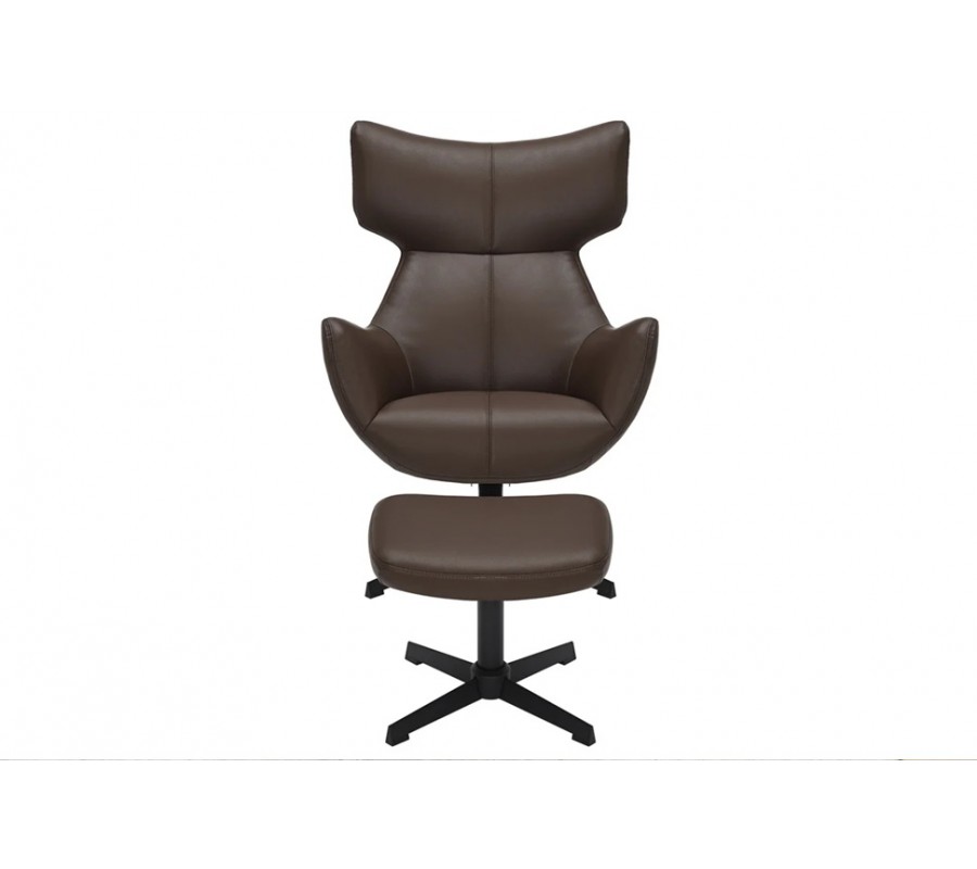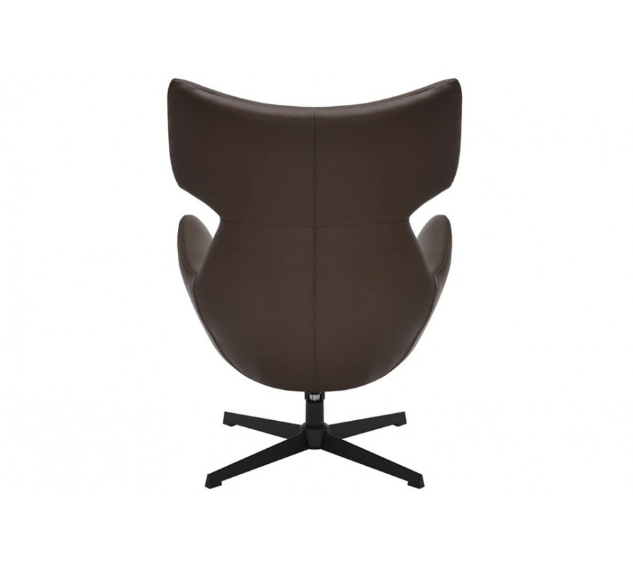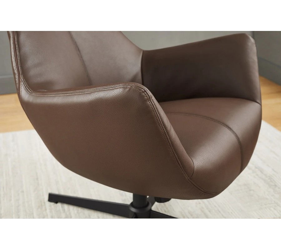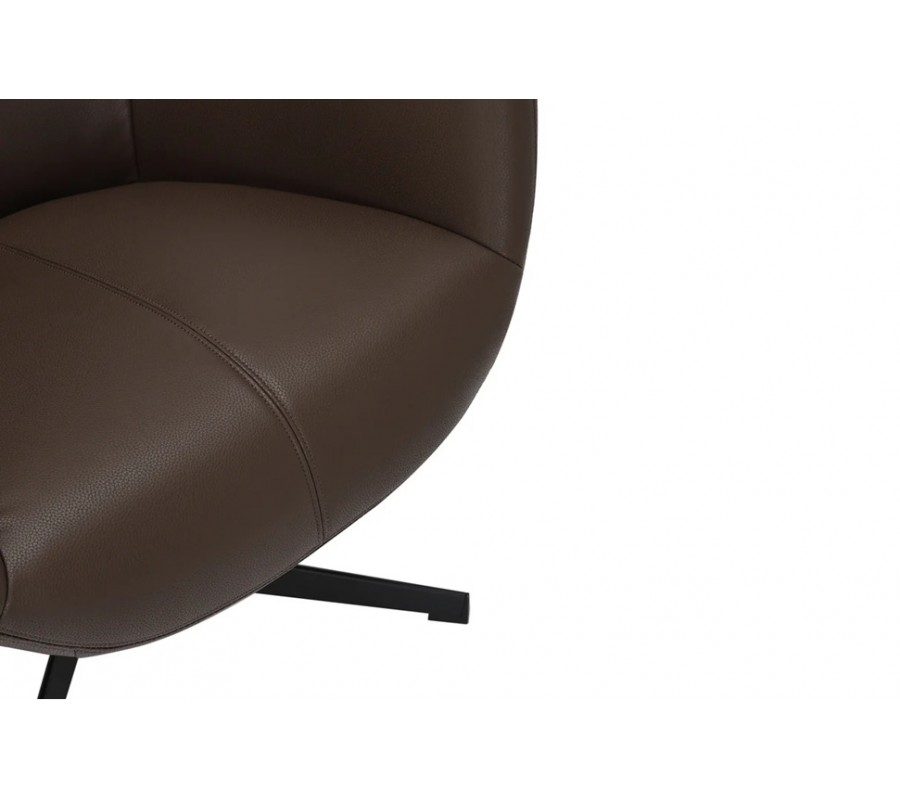 Penová výplň zjemňuje geometrickosť dizajnu a poťah z ekokože má hladký, na dotyk príjemný povrch. Zdobí ho minimalistické prešívanie sa spojoch a jedna dominantná línia prechádzajúce stredom kresla. Teplá zemitá hnedá farba dizajn zútulňuje.