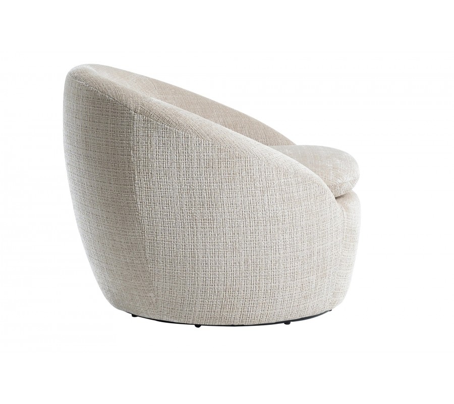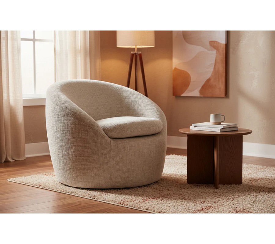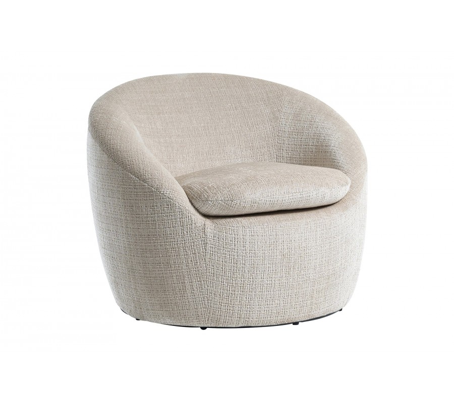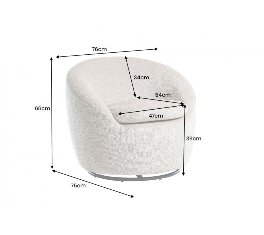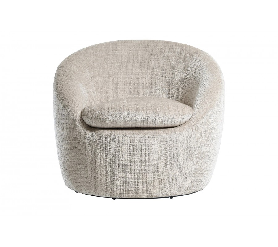 Moderné otočné okrúhle kreslo Elian s čalúnením a poťahom zo štruktúrovanej látky v béžovej farbe 76 cm