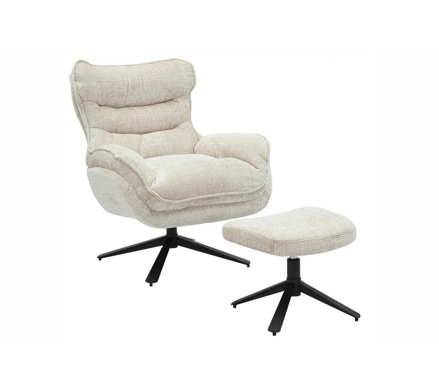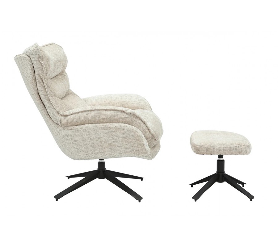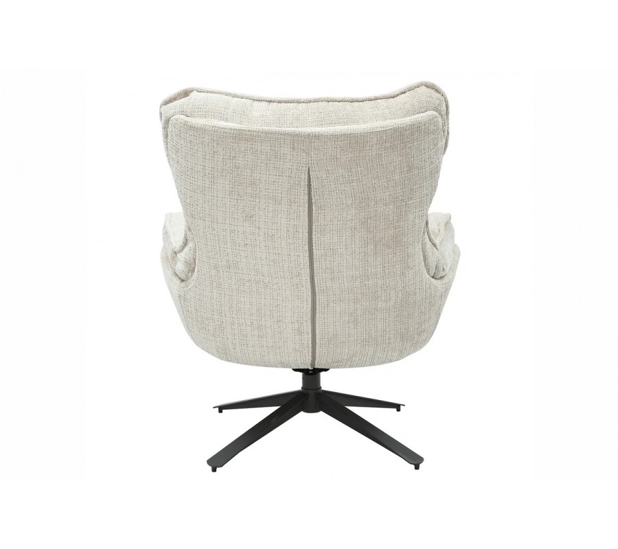 Moderné dizajnové otočné kreslo Velly s béžovým textúrovaným poťahom a čiernou kovovou nohou 95 cm