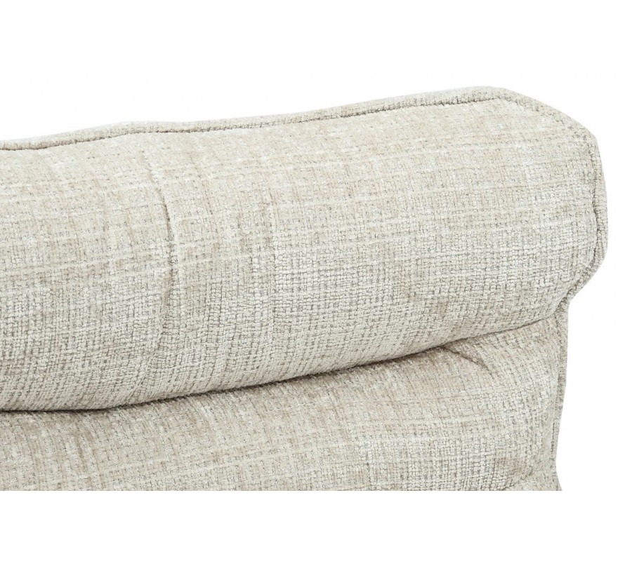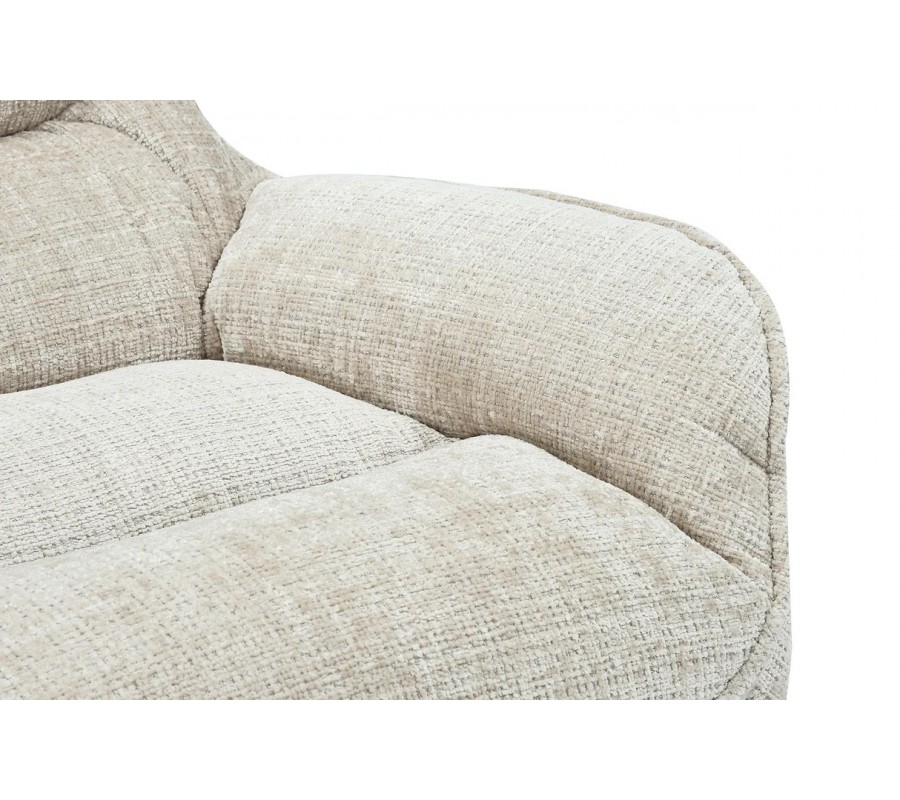 Poťah je vyrobený z mikrovlákna v elegantnom svetlom béžovom prevedení. Textília má výrazné tkanie s hrubšieho vlákna, pripomínajúceho ženilku. Vytvára bohatú vizuálnu štruktúru s jemným zamatovým leskom, je príjemná na dotyk a zároveň výborne odoláva vplyvom každodenného používania.