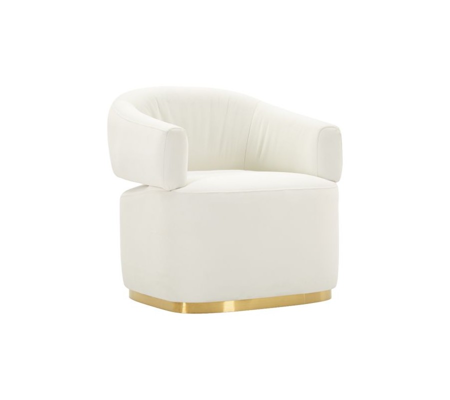 Luxusné kreslo Juteg je výrazným dizajnovým solitérom, ktorý spája eleganciu art deco štýlu s moderným glamour nádychom. Čisté biele prevedenie pôsobí sofistikovane a nadčasovo, zatiaľ čo zlatá kovová podstava dodáva kreslu exkluzívny a reprezentatívny charakter.