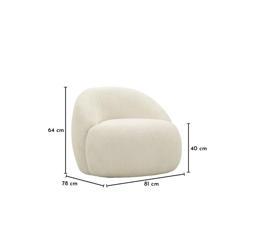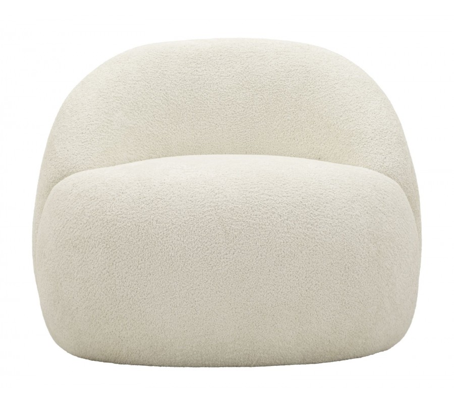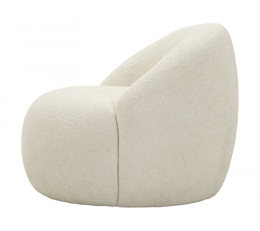 Dizajnové moderné kreslo Berry s bielym plyšovým poťahom a zaoblenou chrbtovou opierkou 81 cm