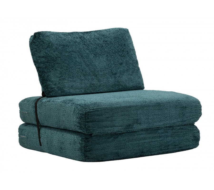 Dizajnové čalúnené modré rozkladacie kreslo Raffai s plyšovým poťahom a obdĺžnikovým operadlom 100 cm