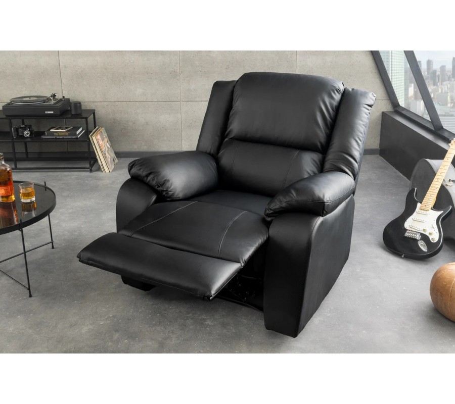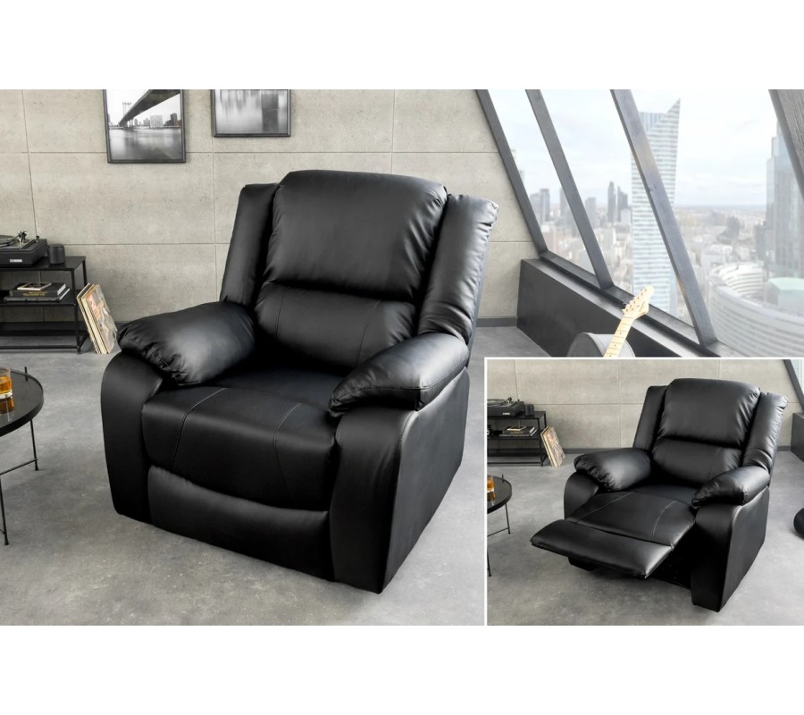 Moderné čalúnené rozkladacie kino kreslo Phoenix v čiernej farbe z eko kože 104 cm