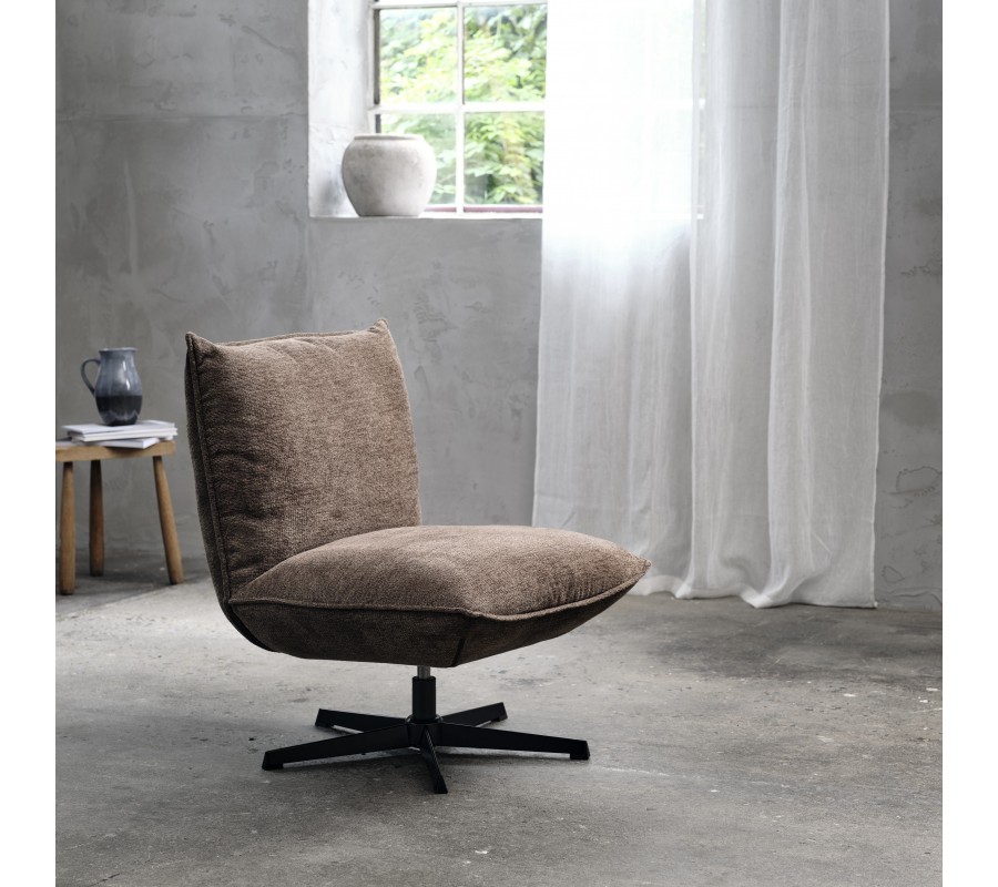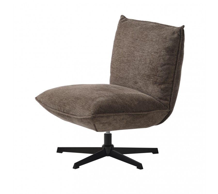 Moderné industriálne kreslo Nielsen bez bočných opierok s hnedým ženilkovým poťahom a čiernou kovovou podstavou 70 cm