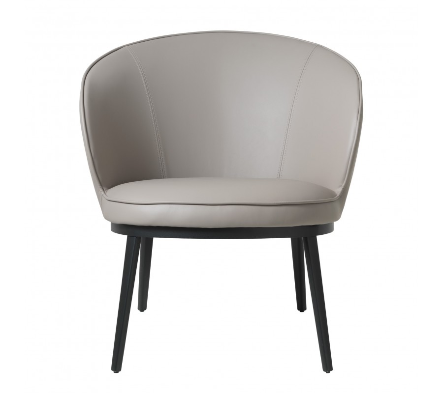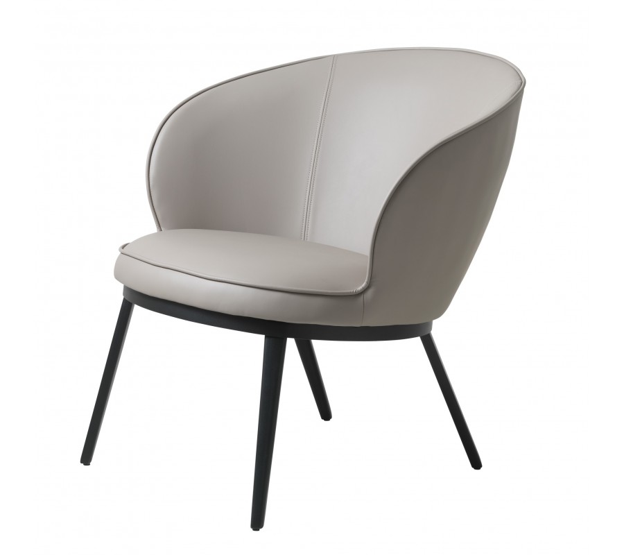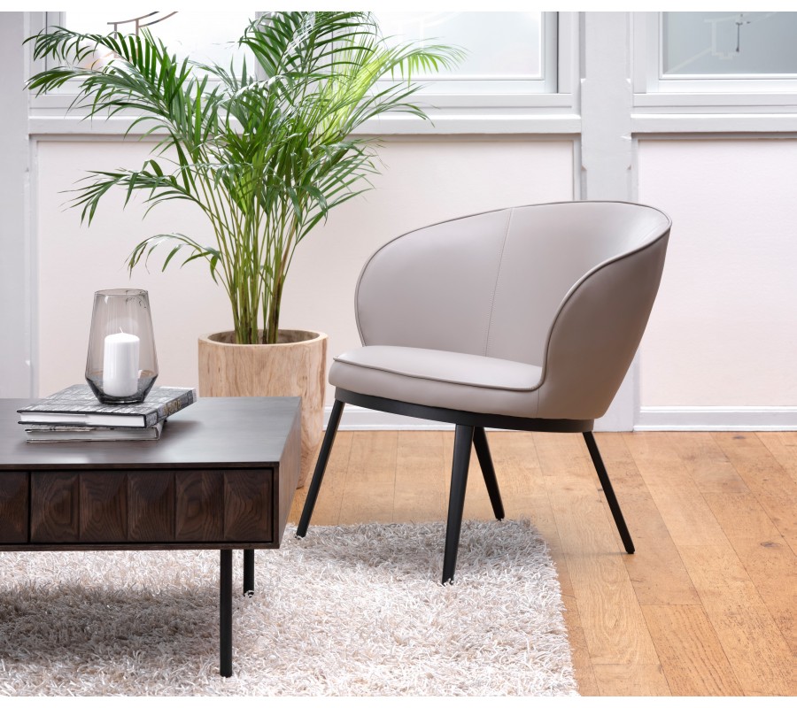 Moderné industriálne kreslo Gamla s hnedosivým koženým poťahom v odtieni taupe s čiernou kovovou podstavou 73 cm