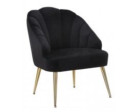 Dizajnové art deco okrúhle kreslo Laurentia s nízkou opierkou so žltým zamatovým poťahom a zlatým detailom 62 cm