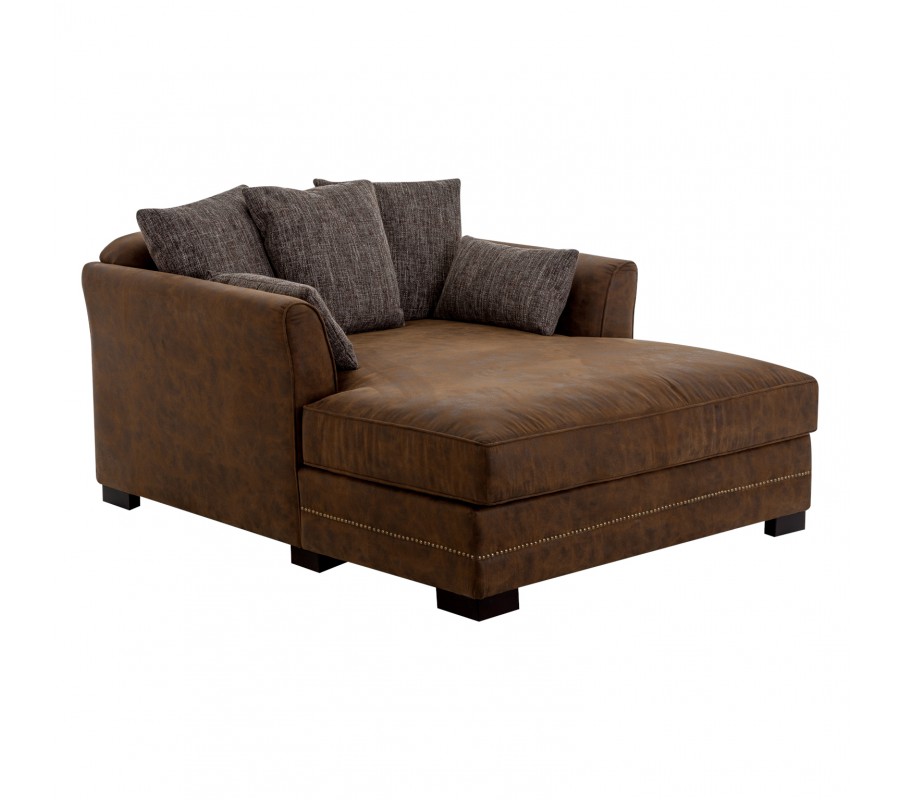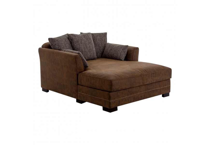 Leňoška hnedej farby má poťah vyrobený z polyesteru a vnútornú konštrukciu z borovicového dreva .