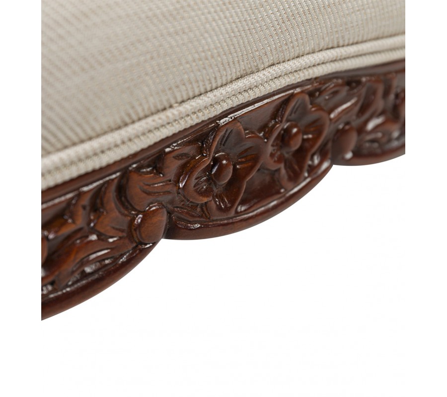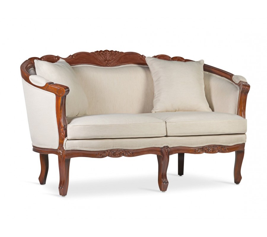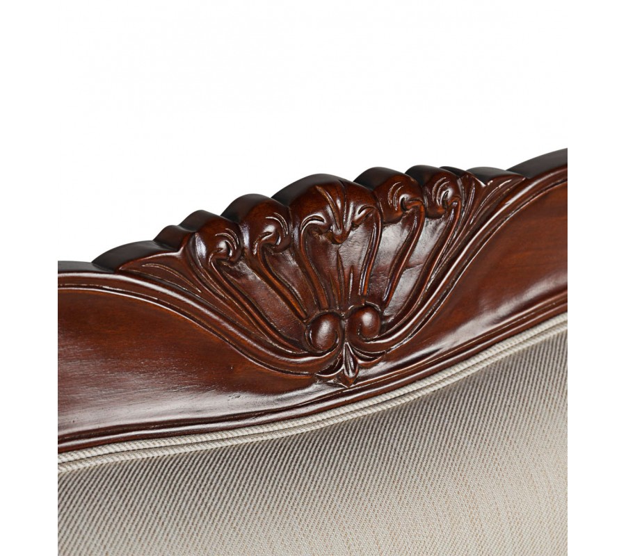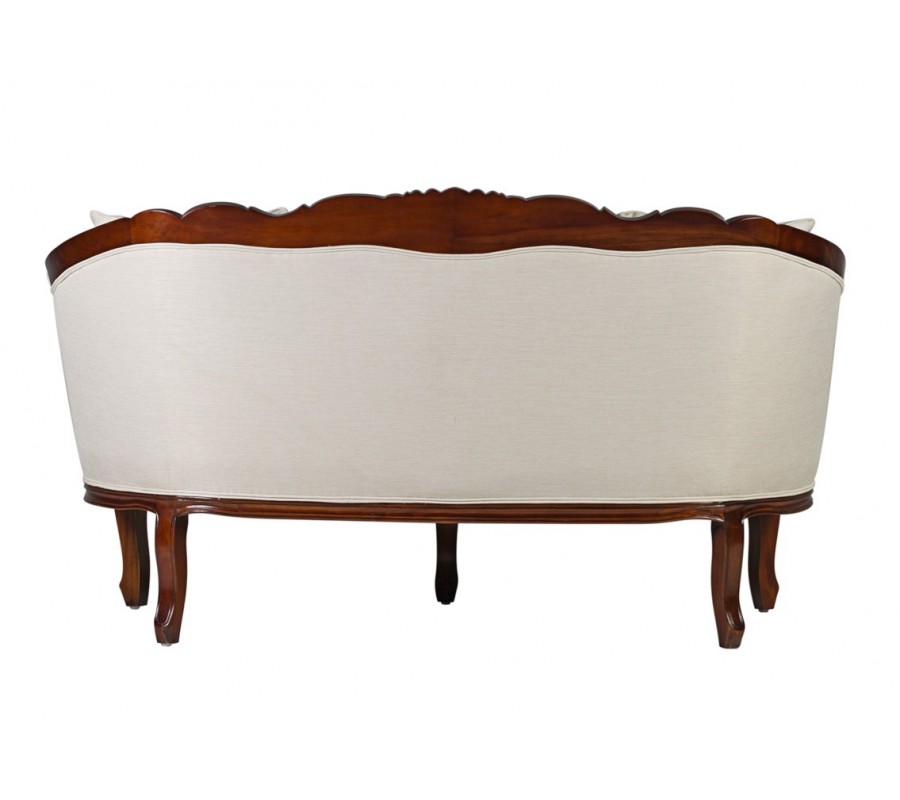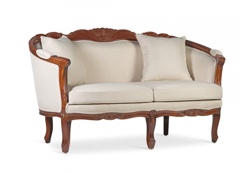 Luxusná sedačka z kolekcie M-Vintage je tým pravým kúskom pre všetkým milovníkov vintage či barokového štýlu. Je vyrobená z masívneho mahagónového dreva tmavohnedej farby, ktoré je doplnené béžovou poťahovou látkou. Čalúnenie vám dopomôže k dokonalému komfortu a rovnako aj dva menšie vankúšiky. Elegantné línie nožičiek a ornamentálne ručné vyrezávanie a kabriolové oblúkové zdobené nožičky nádherne vyniknú vo všetkých luxusných obývačkách vo vintage či rustikálnom štýle. Pre dokonalý dojem odporúčame sedačku kombinovať s ďalšími masívnymi kúskami z našej jedinečnej kolekcie M-Vintage, prípadne dekoráciami v svetlých farbách.