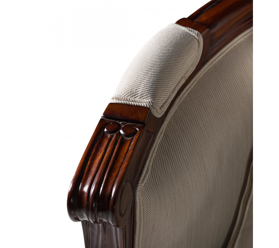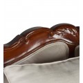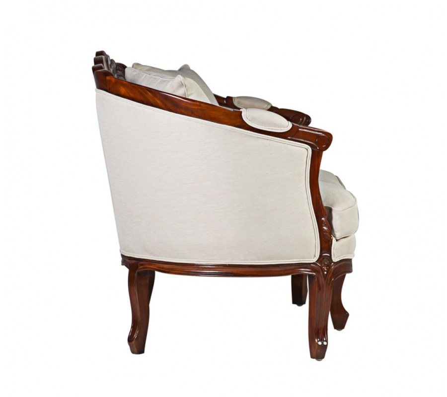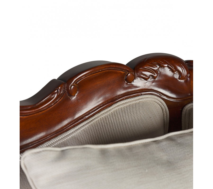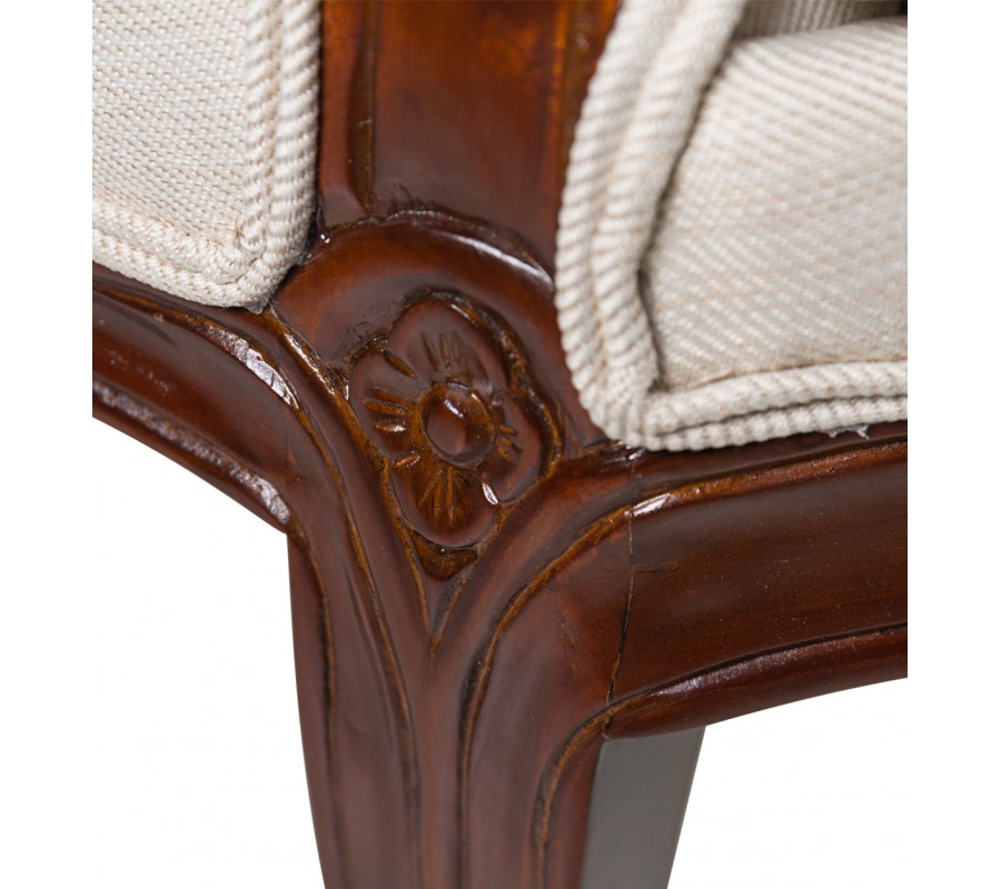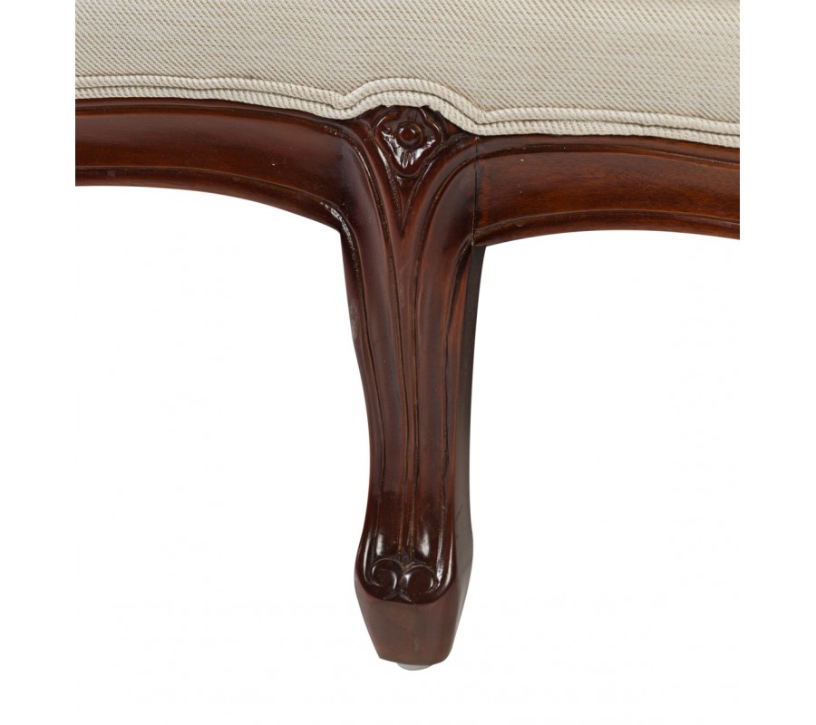 Luxusná sedačka z kolekcie M-Vintage je tým pravým kúskom pre všetkým milovníkov vintage či barokového štýlu. Je vyrobená z masívneho mahagónového dreva tmavohnedej farby, ktoré je doplnené béžovou poťahovou látkou. Čalúnenie vám dopomôže k dokonalému komfortu a rovnako aj dva menšie vankúšiky. Elegantné línie nožičiek a ornamentálne ručné vyrezávanie a kabriolové oblúkové zdobené nožičky nádherne vyniknú vo všetkých luxusných obývačkách vo vintage či rustikálnom štýle. Pre dokonalý dojem odporúčame sedačku kombinovať s ďalšími masívnymi kúskami z našej jedinečnej kolekcie M-Vintage, prípadne dekoráciami v svetlých farbách.