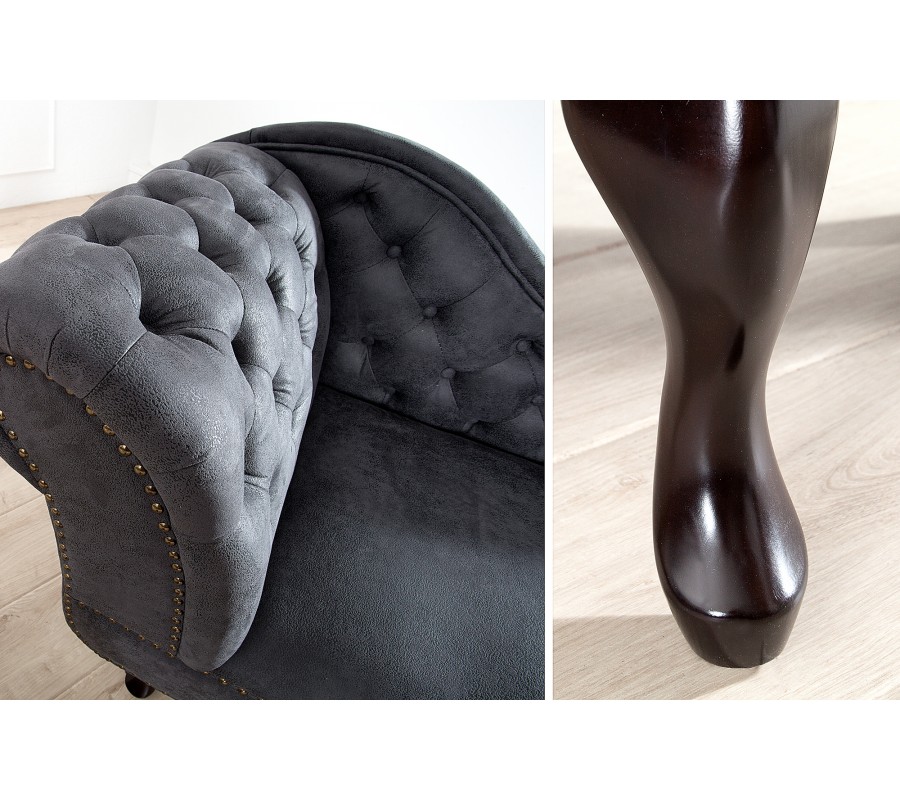 Luxusná leňoška Chesterfield Antik Look je dokonalým nadčasovým kúskom do luxusne, rustikálne či vidiecky zariadených domácností. Leňoška je jedinečným kúskom do vašej obývacej miestnosti, spálne či pracovne. Ak hĺadáte výnimočmý nadčasový kúsok, leňoška Chesterfield Antik look je práve pre vás. Tradičný anglický dizajn v štýlovej sivej farbe je dokonalou elegantnou kombináciou, ktorá je vhodná taktiež do moderne zariadených interiérov. Leňoška Chesterfield Antik look je prvotriednym kúskom, ktorý vám ponúkne luxusný odpočinok a oázu pokoja po ťažkom dni.