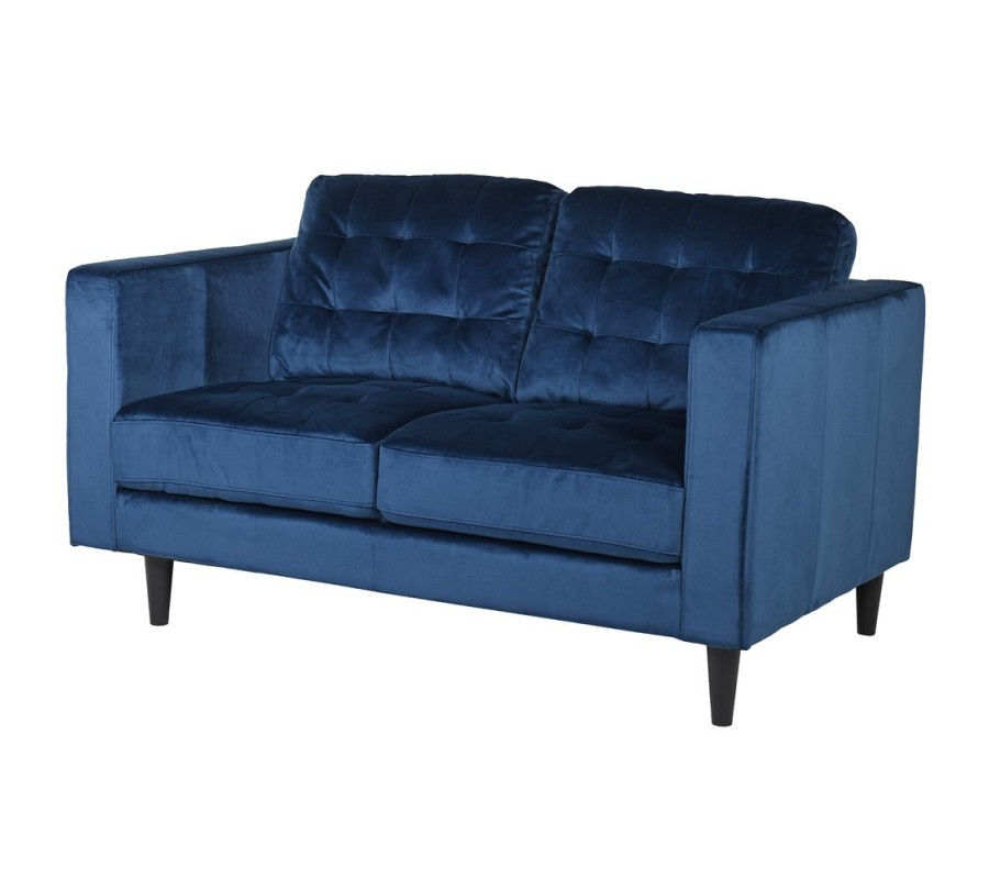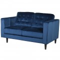 Štýlová dvojpohovka Faux v indigo modrom zamatovom čalúnení s čiernymi nožičkami z masívu 140cm