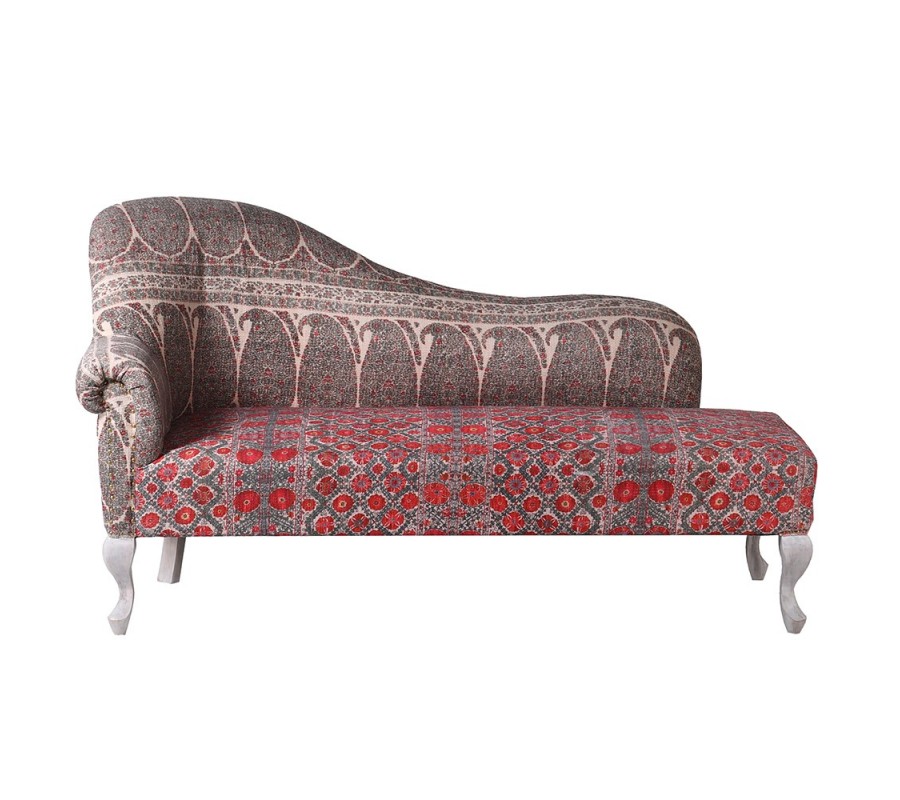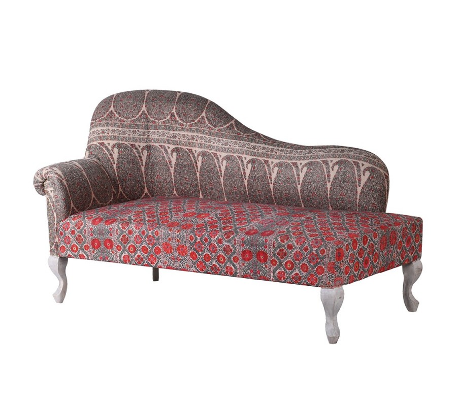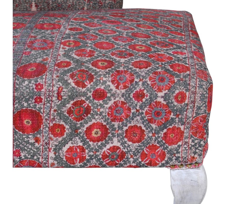 Dopriať si pohodlie štýlovo v leňoške Burgas poteší každého milovníka nábytku, v ktorom sa snúbi originálny dizajn, kvalitné vyhotovenie a pohodlie pri oddychu. Konštrukcia v masívneho tropického mangového dreva je postavená na štyroch kabriolových nožičkách s vintage nádychom v bielej farbe. Opierka na chrbát a ruku oblého tvaru na ľavej strane je čalúnená poťahom zo 100% bavlny. Unikátny exotický nádych vnáša nábytku vzor na poťahu, ktorý variuje v pestrosti. Očarujúca kombinácia bielej, sivej a červenej farby vytvára unikátne spojenie, ktoré vynikne v orientálne či etno ladených obývačkách, jedálňach alebo vstupných halách. Vynikne pri orientálnych tapetách so striebornými aplikáciami či vázami v lesklom prevedení.