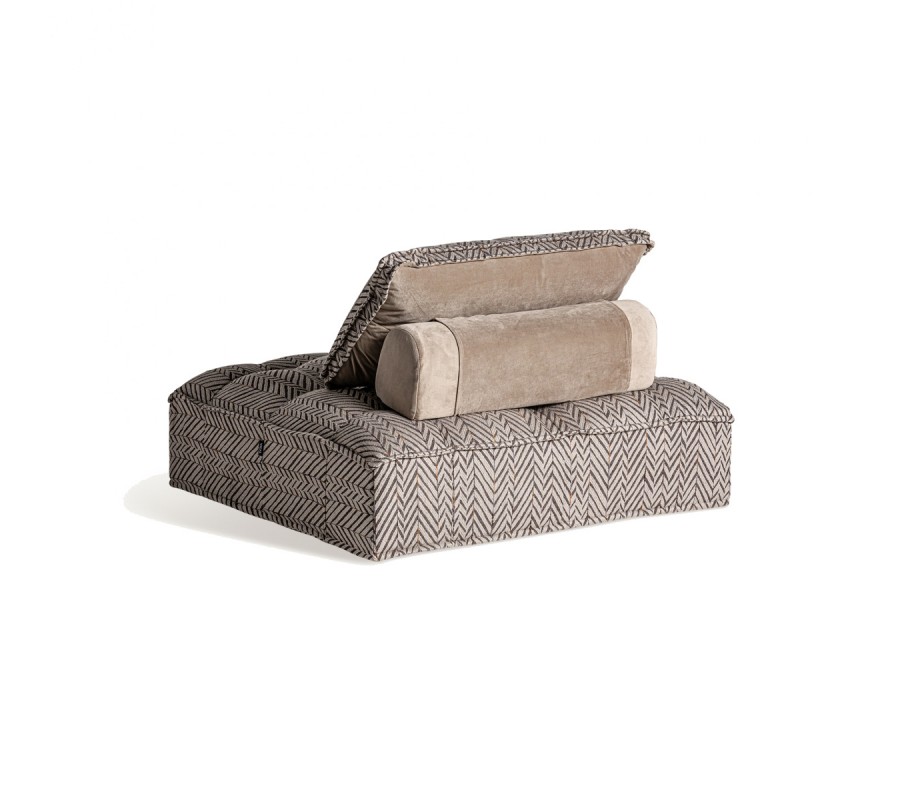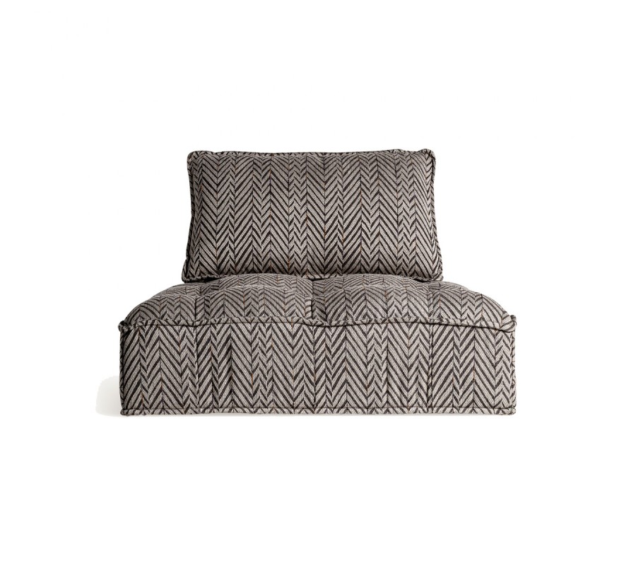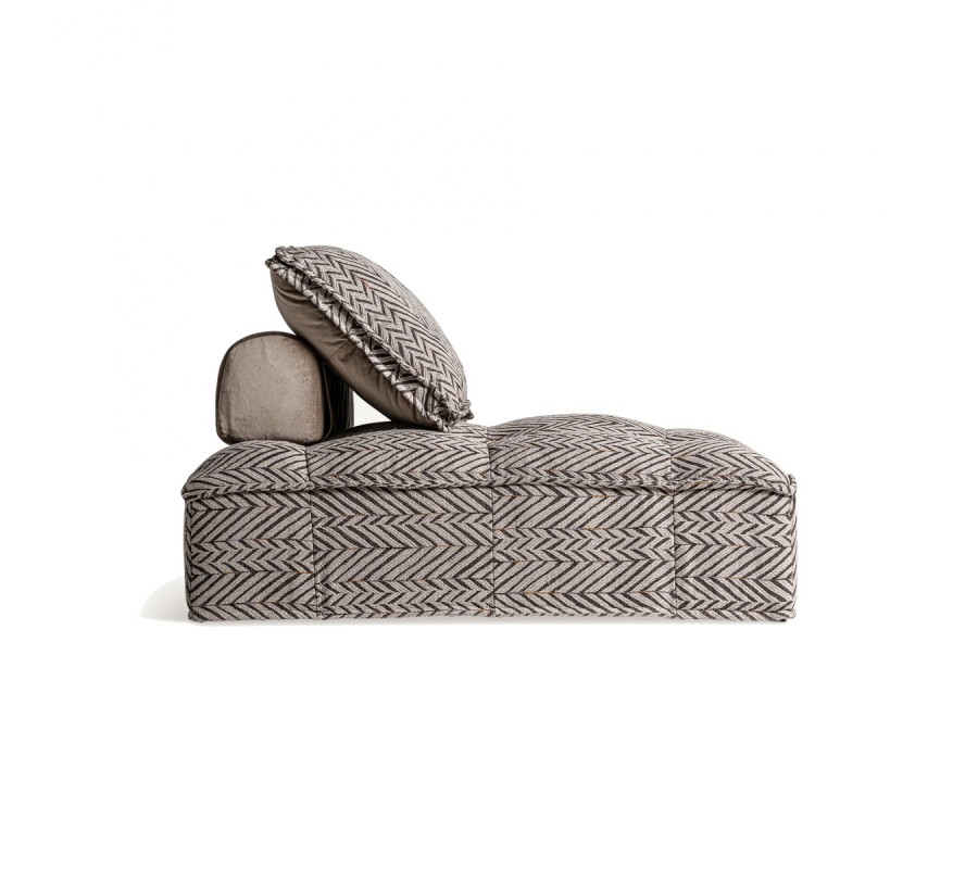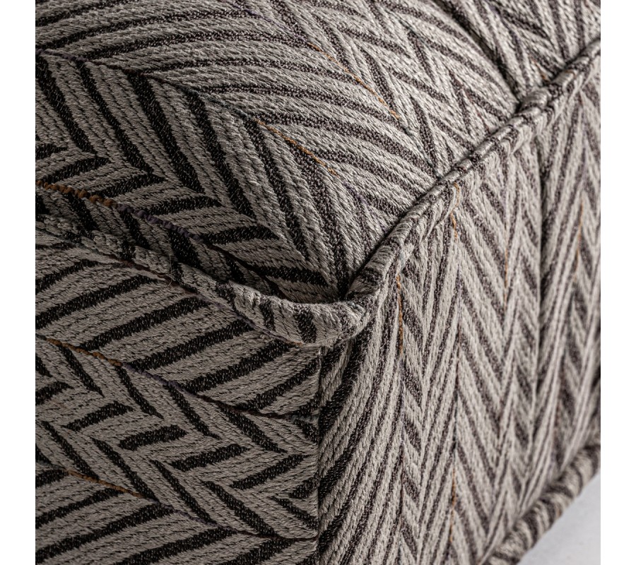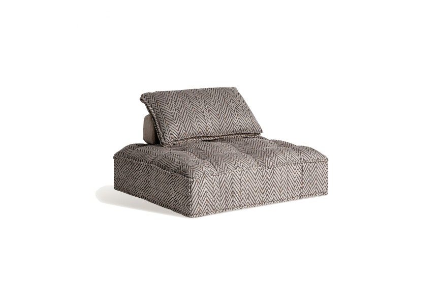 Moderná dizajnová čalúnená pohovka Saraela štvorcového tvaru s geometrickým vzorom v hnedých odtieňoch 120cm