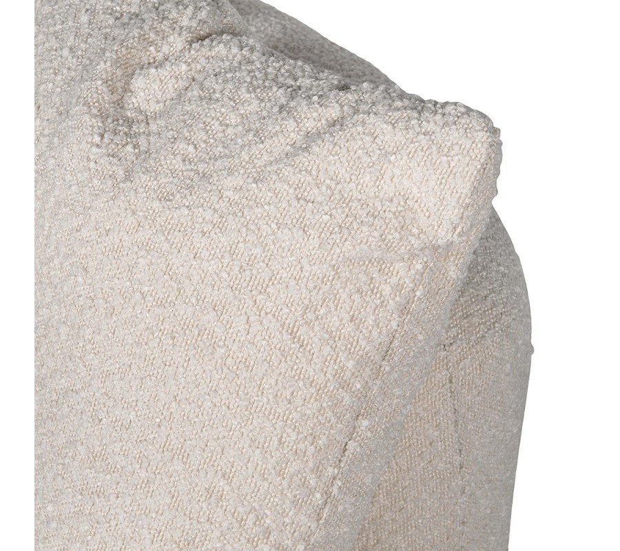 Buklé čalúnenie, známe aj ako boucle má svoj charakteristický vzhľad s jemne skrútenými slučkami, ktorý poskytuje pohodlie a pritom esteticky pôsobí veľmi pútavo. Takýto jedinečný dizajn Vám prinesie aj kreslo Lala v krémovo bielom, slonovinovom farebnom prevedení.