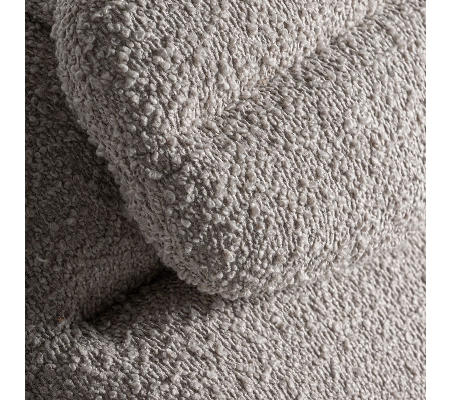 Povrch tvorí príjemné mikrovlákno v béžovej farbe, ktoré pôsobí jemne a elegantne. Jeho textúra pripomína prírodné buklé, čo dodáva látke vizuálnu hĺbku a štýlový charakter. Celoplošné priečne prešívanie zvyšuje komfort aj trvácnosť výplne, zatiaľ čo integrovaný vankúš na oporu hlavy poskytuje extra pohodlie.