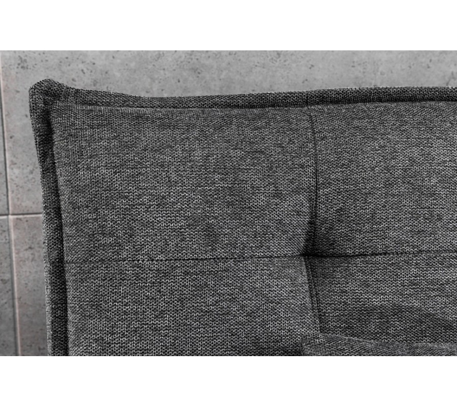Sedačka je potiahnutá sivou textíliou z mikrovlákna s výraznejšou štruktúrovanou väzbou a jemným melírovaným efektom, ktorý dodáva povrchu hĺbku a živší vzhľad. Materiál je pevný, odolný a vhodný na každodenné používanie, zároveň je príjemný na dotyk a nenáročný na údržbu. Textília pôsobí moderne, prirodzene a elegantne bez lesku.