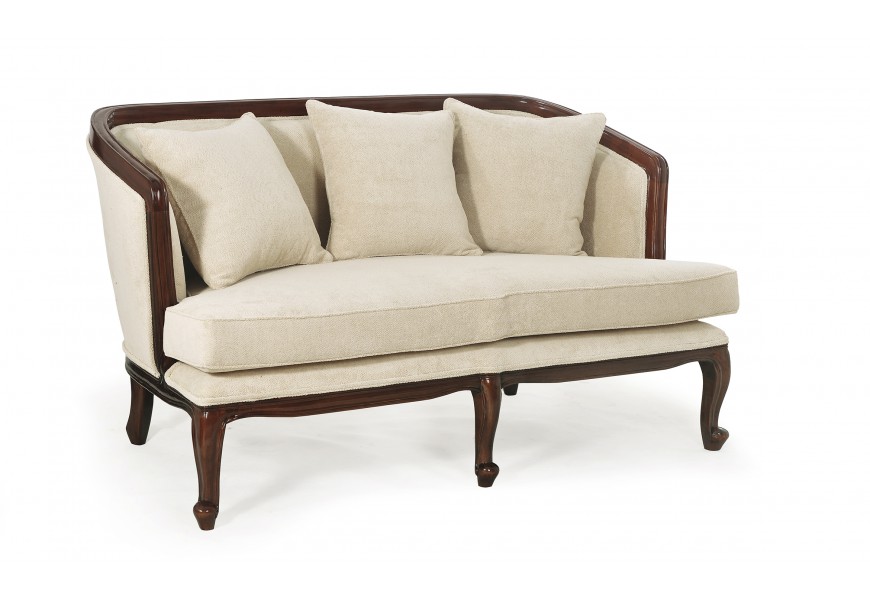 Luxusná sedačka z kolekcie M-Vintage jedinečným prepojením koloniálneho, rustikálneho a vintage štýlu. Jej konštrukcia je vyrobená z masívneho mahagónového dreva tmavohnedej farby, ktoré je doplnené béžovou poťahovou látkou. O vaše pohodlie sa postarajú aj tri menšie vankúšiky v rovnakej farbe. Elegantné línie a ornamentálne vyrezávanie na nožičkách nádherne vyniknú vo všetkých luxusných obývačkách v koloniálnom či rustikálnom štýle. Odporúčame sedačku kombinovať s ďalšími kúskami z kolekcie M-Vintage, prípadne iným masívnym nábytkom a dekoráciami v svetlých farbách.