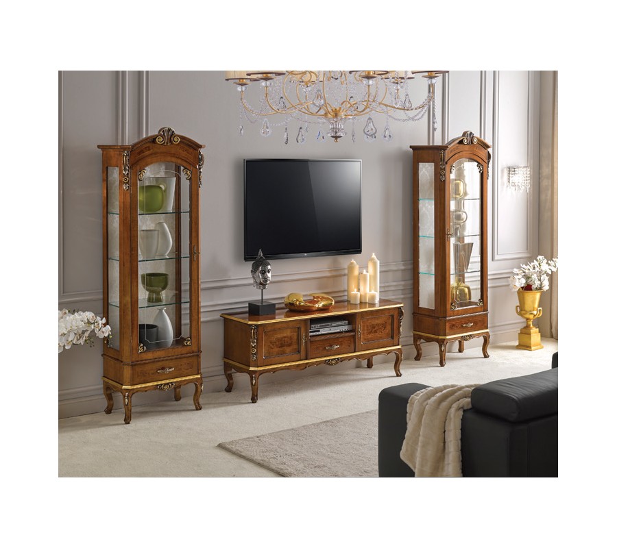 Luxusná rustikálna obývacia zostava Clasica predstavuje vrchol nábytku s historizujúcim klasickým vzhľadom. Nábytok z kolekcie Clasica je zákazkový nábytok vyrábaný talianskou nábytkarskou firmou s dlhoročnou tradíciou siahajúcou až do minulého storočia. Taliansky nábytok z kolekcie Clasica je zákazkový ručne vyrábaný nábytok z masívneho dreva. Historizujúci klasický dojem je umocnený ručne vyrezávanými detailmi, intarziami, rovnako nožičkami v štýle chippendale, ktoré sú typické pre celú kolekciu a v neposlednom rade ručne maľovanými zlatými a striebornými detailmi. Nábytok z kolekcie Clasica sa dá upraviť podľa Vašich predstáv. Môžete si vybrať z množstva farebných prevedení podľa vzorkovník a tiež si môžete vybrať z voliteľných dekoratívnych prvkov, akými sú intarzia, ručne maľované detaily, či ozdobné "korunky" na vitrínach. Nábytok z kolekcie Clasica odporúčame kombinovať s nábytkom rovnakej kolekcie ale aj s kloekciami Pasiones, Emociones a s iným nábytkom rovnakého rustikálneho alebo klasického štýlu.