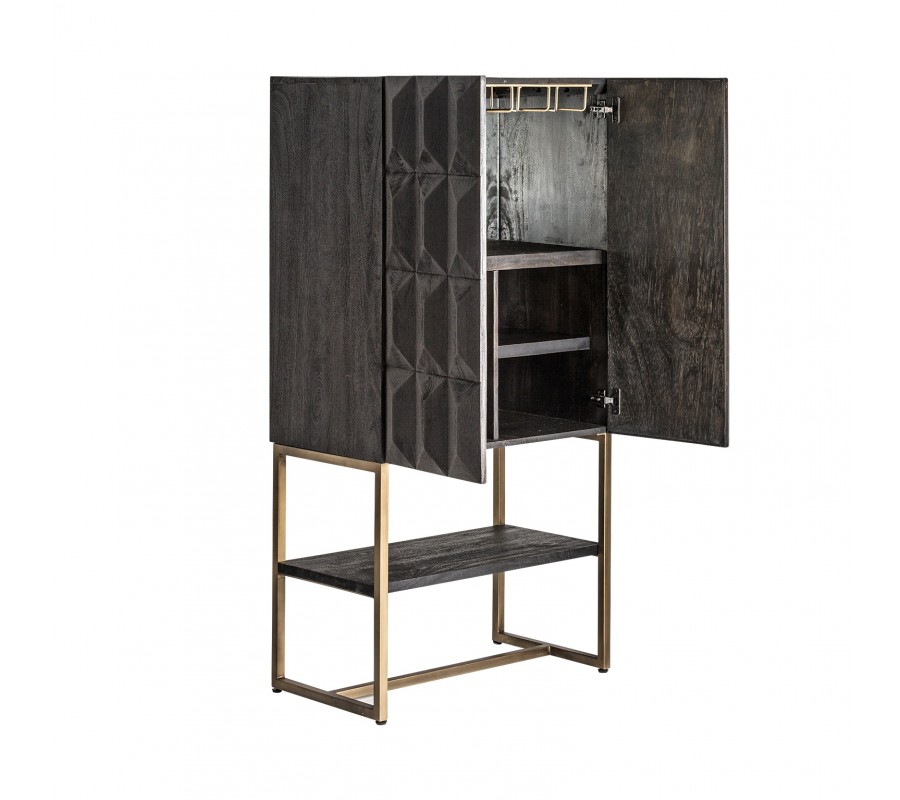Naozaj vkusným a vďačným kúskom vo Vašej zbierke dizajnového nábytku sa môže stať táto barová skrinka z kolekcie Weitra. Vyrobená z kvalitného mangového dreva čiernej farby, kombinovaného so zlatými odtieňmi úložných prvkov a podstavca, bude zaručene klenotom vo Vašom domove dlhé roky. Je príkladným predstaviteľom štýlu art-deco, no vďaka nevšednému dizajnu pôsobí veľmi mladistvo a zapadne tak i do interiérov ladených v iných štýloch. Zaručene Vás poteší i množstvom dômyselne rozloženého úložného priestoru, ktorý poskytuje.