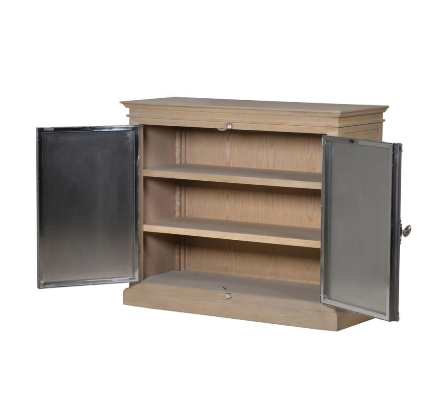 Exkluzívna skrinka Terestria krásne doplní a spestrí moderné obývačky, pracovne či spálne. Je vyrobená z kvalitného masívneho dubového dreva v svetlohnedom prevedení, vďaka čomu je výborne kombinovateľná v rôznofarebných priestoroch. Ideálne vynikne v kombinácii so svetlými stenami a nábytkom v jemných odtieňoch. Zaujímavý kontrast tvoria dvierka z kovu s lesklým efektom a ornamentálnou rukoväťou. Komodu taktiež spestruje elegantné vyrezávanie vo vrchnej a spodnej časti typické pre koloniálny štýl nábytku. Kombináciou s čistými líniami a hladkým povrchom tak vzniká elegantný moderný kúsok s nádychom klasiky. Skrinka Terestria disponuje tromi praktickými poličkami. Tento elegantný kúsok vynikne predovšetkým v moderne ladených interiéroch.