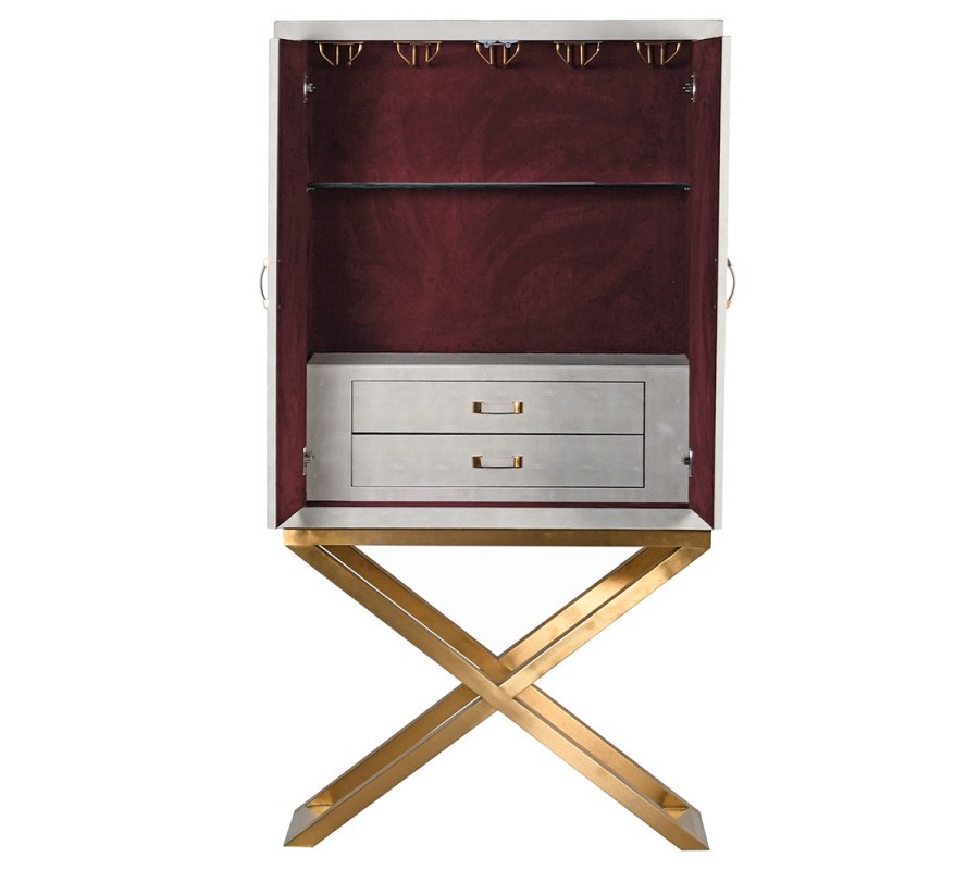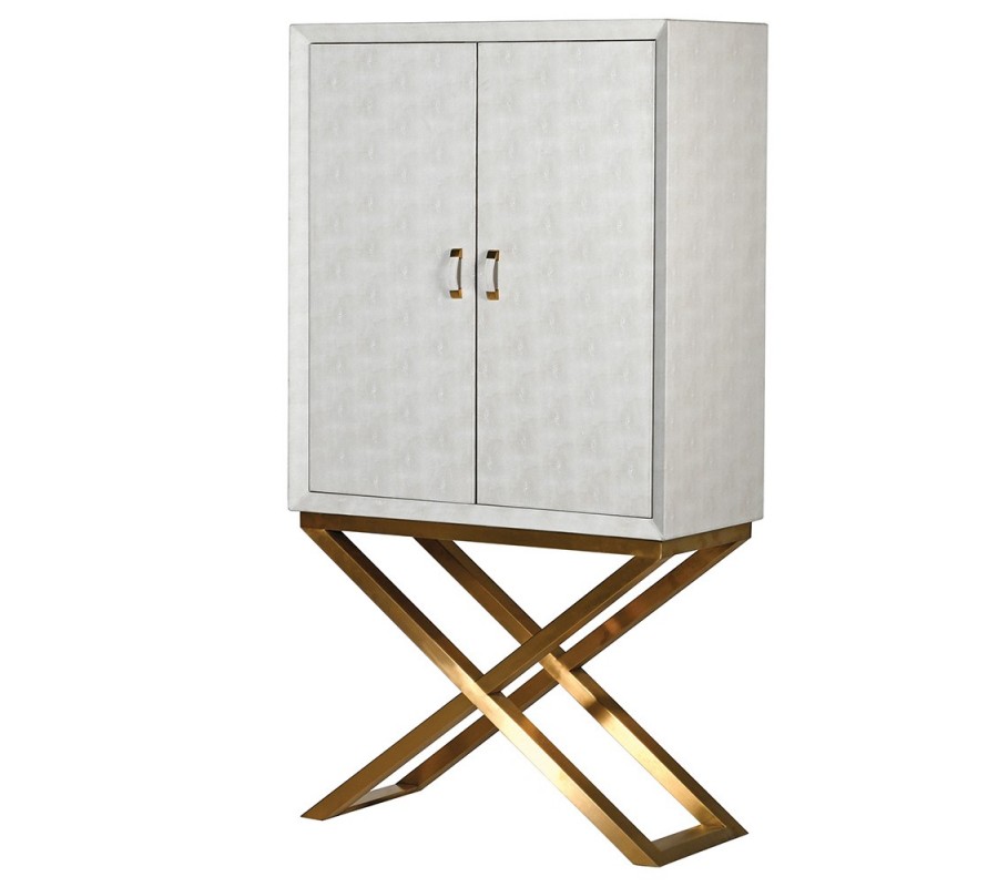 Art deco barová skrinka Ivoria na zlatých nožičkách s dvomi dvierkami a vnútorným úložným priestorom 180cm