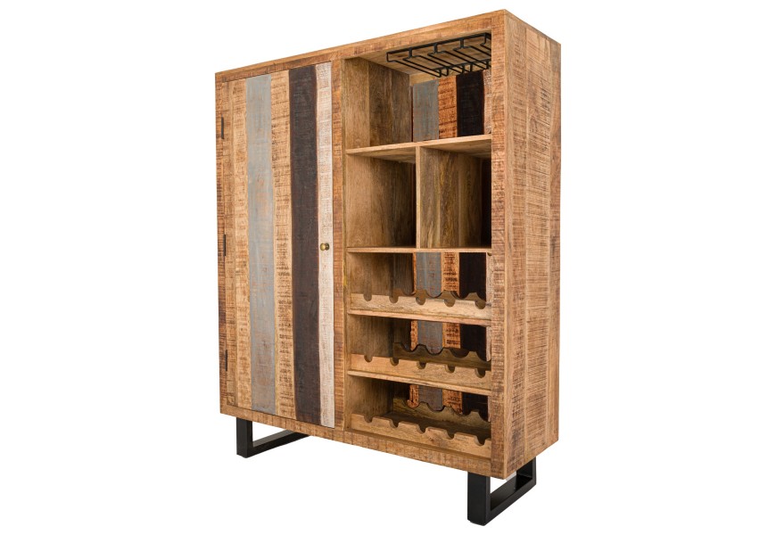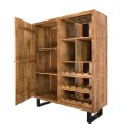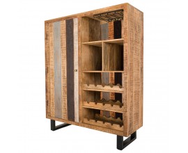 Industriálna masívna barová skrinka Whiskey na nožičkách s policami v hnedom vyhotovené z akáciového dreva 142cm