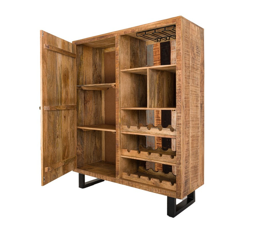 Masívne prevedenie vysokej barovej skrinky Whiskey poteší nejedného milovníka industriálneho štýlu s auntentickými prvkami. Hnedá barová skrinka je vyrobená z kvalitného akáciového dreva a priehľadná povrchová úprava necháva vyniknúť unikátnu kresbu dreva. Konštrukcia je zdobená jemným ryhovaním na vonkajších častiach, čo dodáva dokonalý nedbalý a účelový nádych industriálneho nábytku. Barová skrinka Whiskey je postavená na dvoch čiernych nožičkách obdĺžnikového tvaru, ktoré okrem dizajnovéh vzhľadu podporujú pevnosť a stabilitu skrinky. Vo vnútornom úložnom priestore, ktorý sa skladá zo systému políc a držiakov na poháre na stopkách a fľaše s vašim obľúbeným vínom či destilátom, hrá skrinka pestrou paletou hnedých odtieňov. Úložný priestor uspokojí aj náročných konzumentov a vaše vzácne kúsky sa do nej bezpečne zmiestia. Industriálna barová skrinka sa výborne bude hodiť či už do pánsky ladených pracovní a kancelárií alebo do jedální a domácich knižníc zariadených v zemitých a tmavých hnedých tónoch.