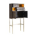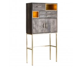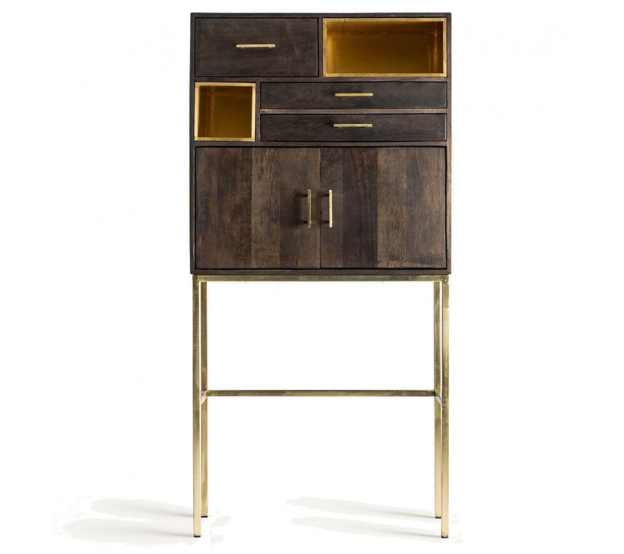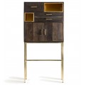 Luxusná art deco barová skrinka Philip z tmavohnedého mangového dreva s detailmi v zlatej farbe 184 cm