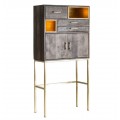 Skrinka je postavená na dlhých štíhlych kovových nohách v zlatej farbe. V polovici ich dĺžky sa nachádza spojnica v tvare U, ktorá prepája bočné a zadnú stranu. Je zaujímavým vizuálnym prvkom a zároveň vám vďaka otvorenej prednej strane umožňuje využívať priestor pod skrinkou.