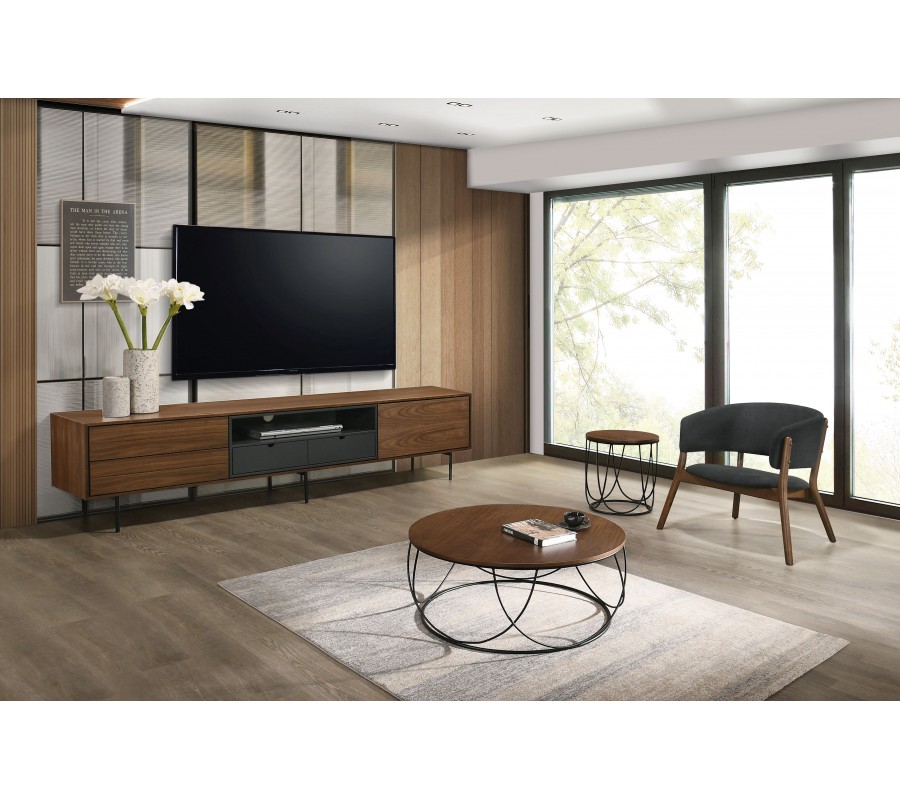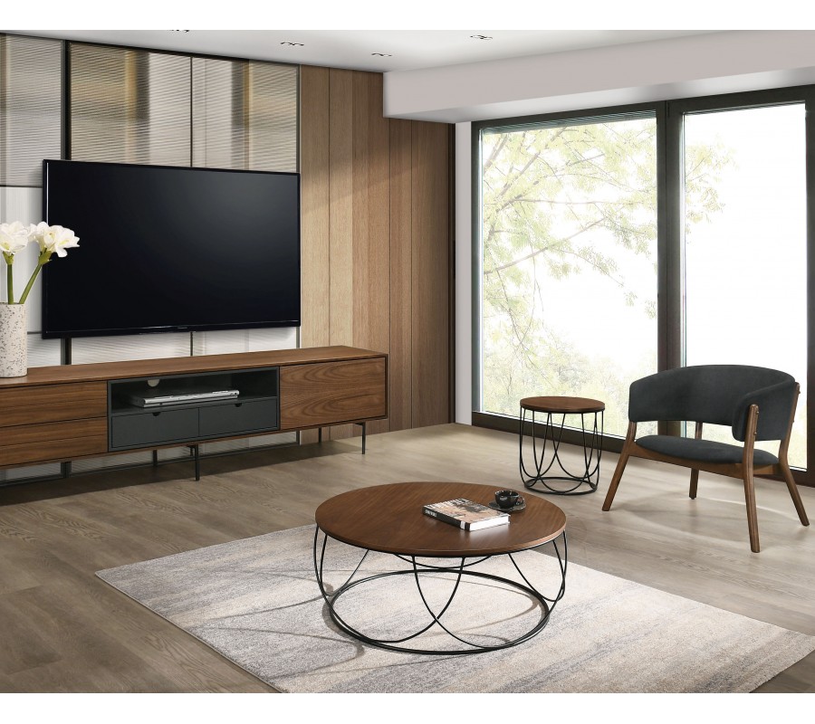 Zostava Nordica Nogal prinesie do vašej obývacej izby moderný luxus. Je skvelou voľbou pre tých, ktorí milujú krásu prírodných materiálov v rámci súčasného dizajnu.