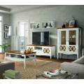Luxusná štýlová obývacia zostava z kolekcie nábytku BASILEA v sebe snúbi estetickú kvalitu tradičného španielskeho nábytku s maurskými prvky a precízne prevedenie. Nábytok, ktorý je súčasťou tejto sústavy, je vyrobený z masívneho borovicového dreva.