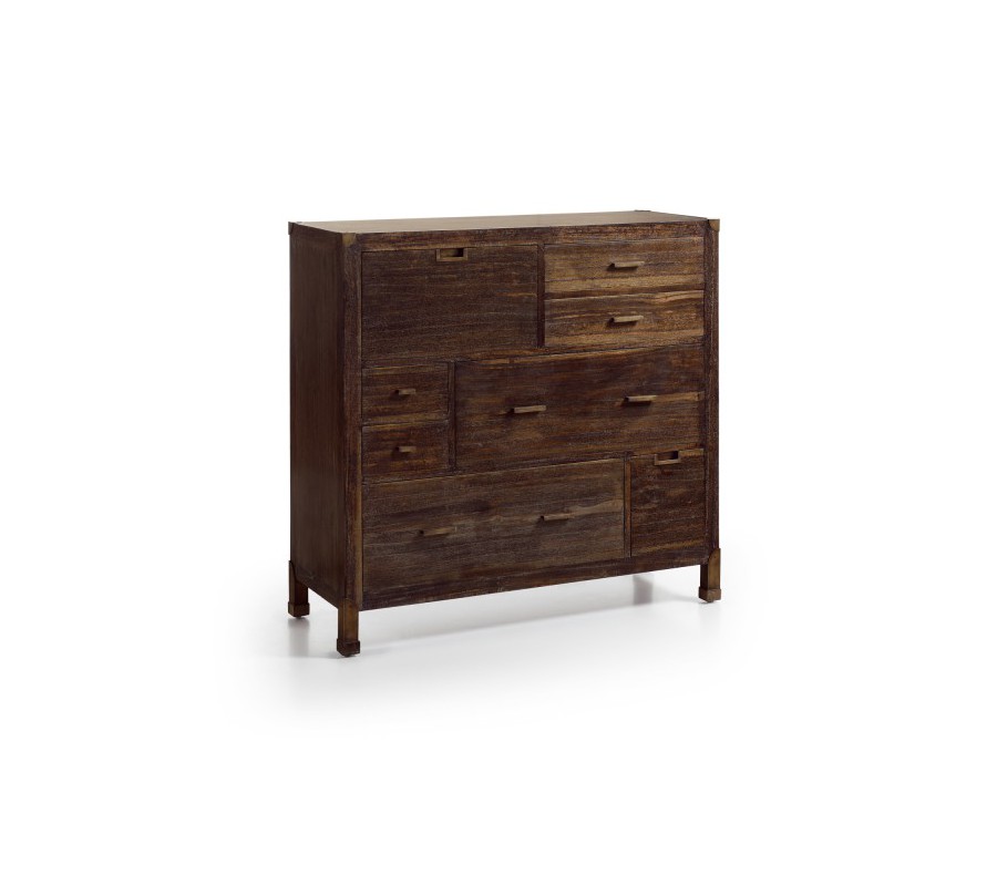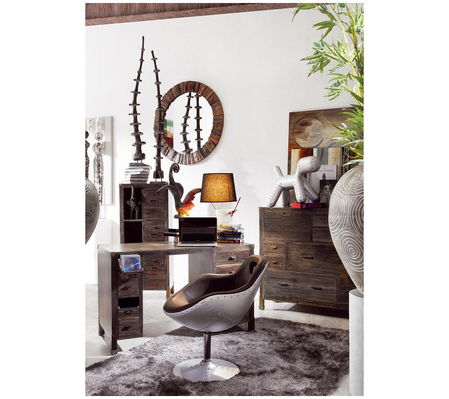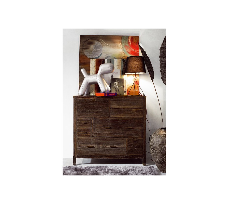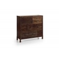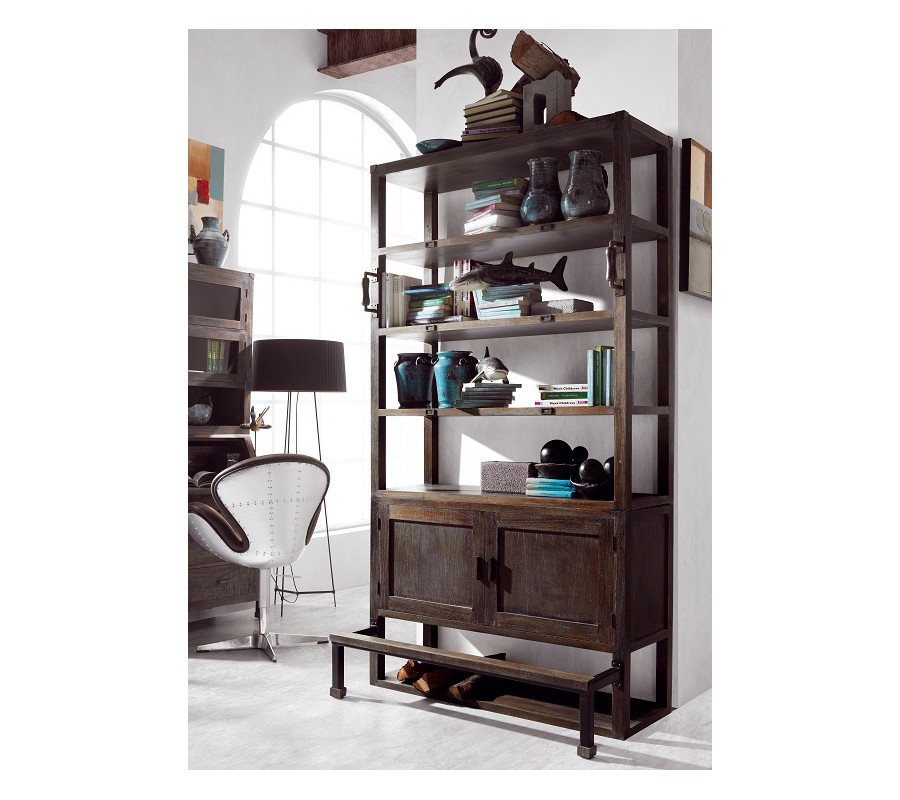 Luxusná dizajnová obývačka z kolekcie M-INDUSTRIAL je vyrobená z masívneho koloniálneho dreva MINDI. Kovové rohové prvky, ako aj úchyty, či nožičky dávajú nábytku priemyselný nádych. Povrch je tmavý orech a je vhodné ho kombinovať či s tmavou alebo svetlou jednoduchou stenou, prípadne obloženou stenou tehličkami.