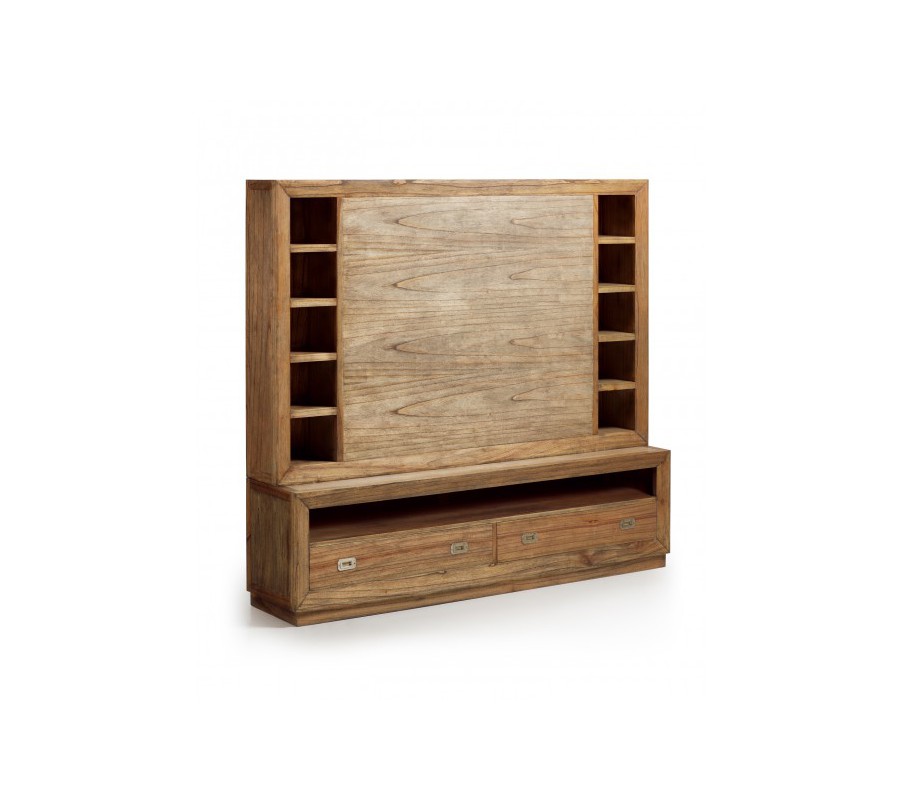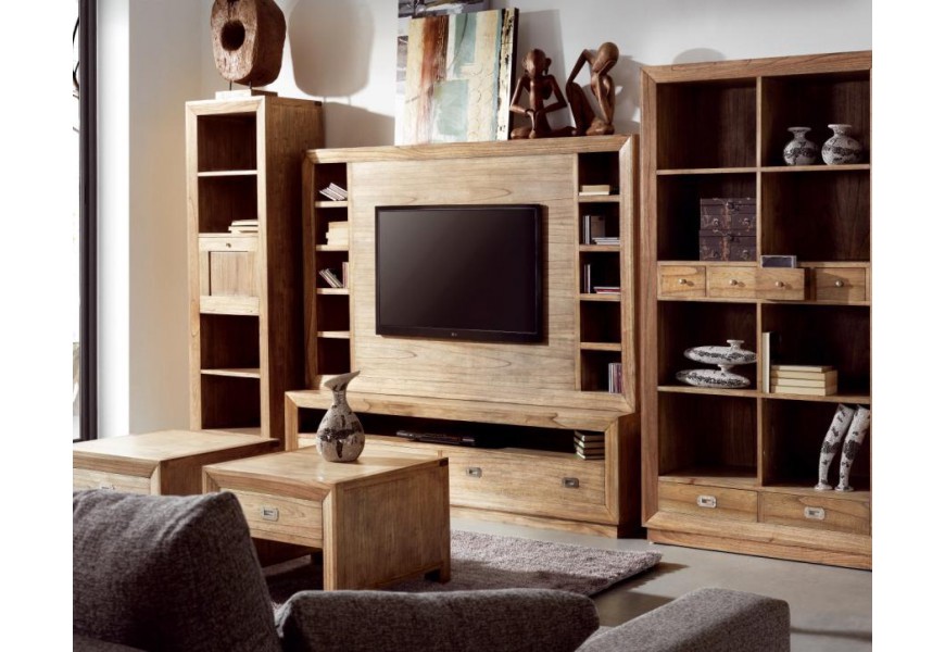 Obývacia stena v kolekcií Seravasti je typicky koloniálny masívny nábytok pre ľudí, ktorí sú farebne konzervatívnejší. Orechový farebný nádych nábytku je vhodný do priestorov s decentnejšími farbami. Vyrobený ručne z dreva MINDI.