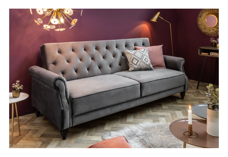 Prešívaná retro sedačka Maison Belle Affaire 220cm šedý zamat