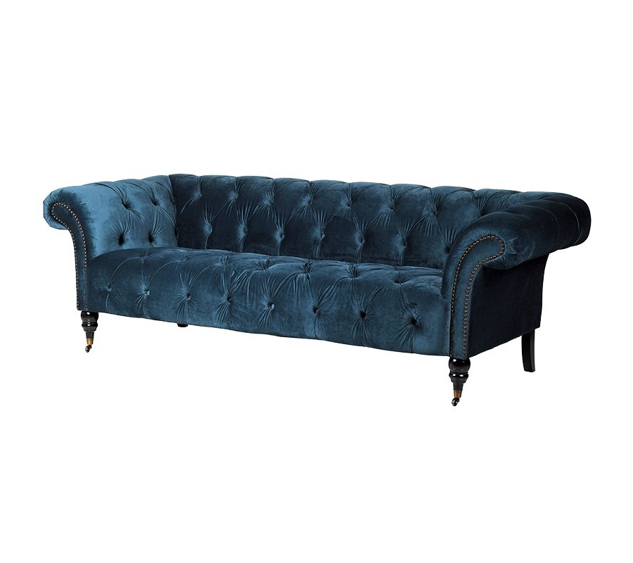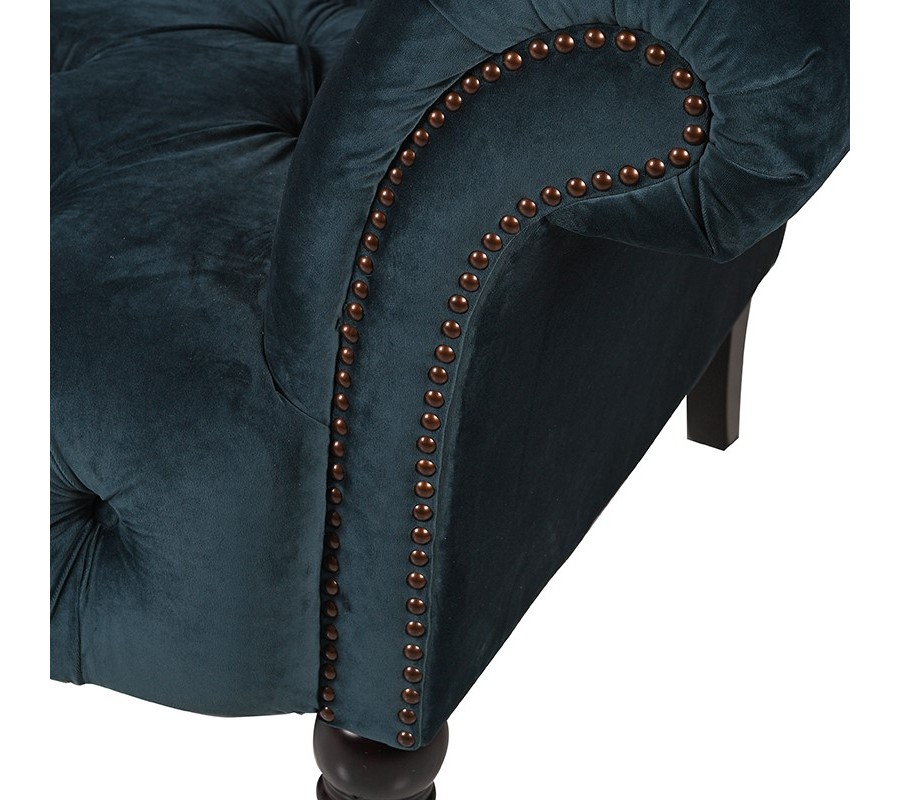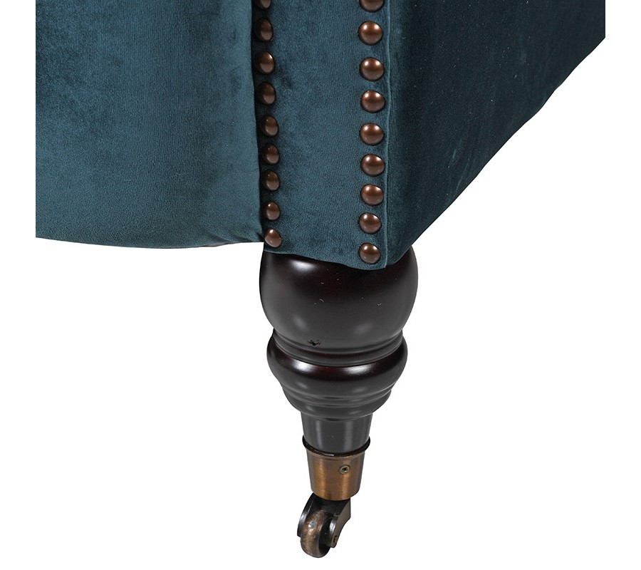 Luxusná sedačka Thieny Petrol v petrolejovej farbe je prvkom, ktorý jednoznačne oživí interiér. Vybíjaný detail na okrajoch sedačky, predné nožičky na kolieskach a netradičné čalúnenie robia z tejto sedačky skutočne zaujímavy kus nábytku. Sedacia časť je prešívana v chesterfield štýle už iba podčiarkuje celkovú extravaganciu tejto sedačky.