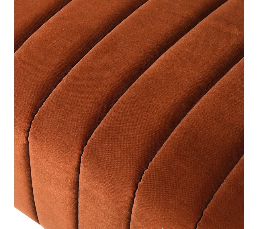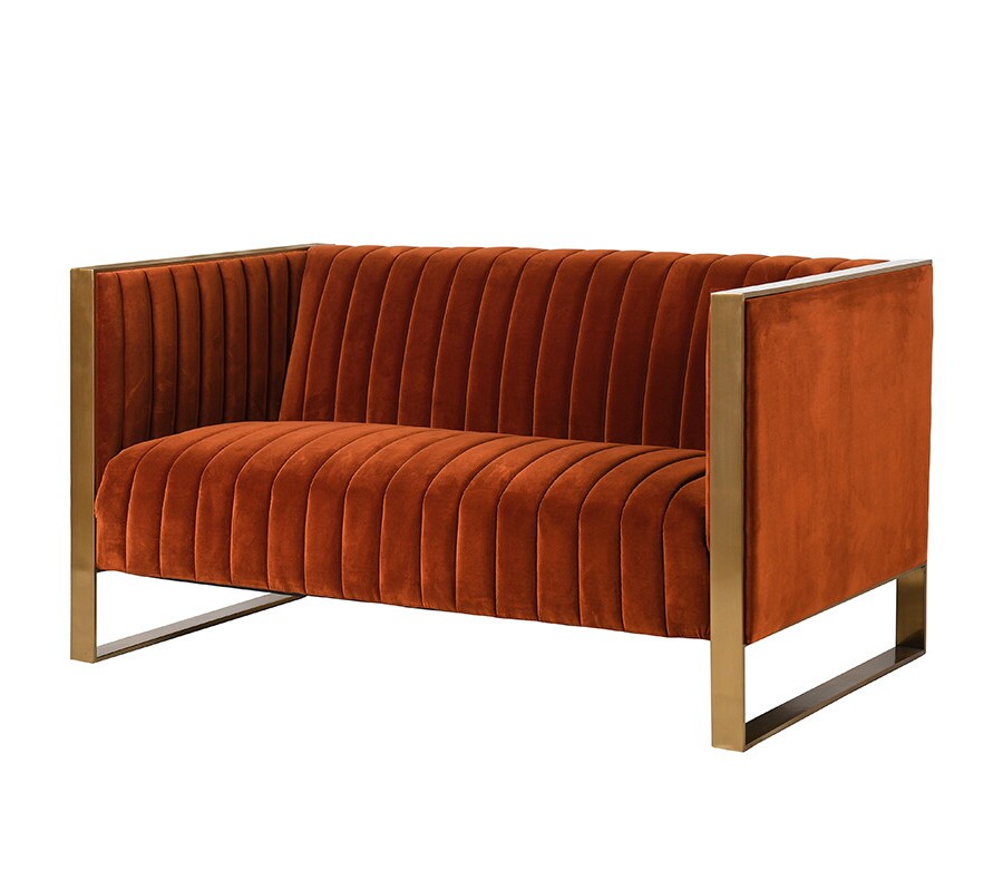 Jedinenčná retro dvojsedačka v pomarančovej farbe je dokonalým nadčasovým kúskom do akejkoľvek domácnosti práve vďaka svojej originálnej farbe, ktorá zaručene prežiari akýkoľvek priestor. Sedačka je vyrobená z materiálu pripomínajúci zamat, jeho prešívanie dodáva sedačke pravú retro atmosféru. Opierky na ruky prispievajú k pohodlnejšiemu sedeniu a ich zlaté lemovanie prináša do priestoru nadčasovú eleganciu. Vďaka výške zlatých nožičiek je upratovanie pod sedačkou jednoduchšie a prístupnejšie. Pokiaľ hľadáte originálny kvalitný nadčasový kúsok, Luxusná retro dvojsedačka oranžovej farby Arroyo 146cm je pre Vás tou pravou.