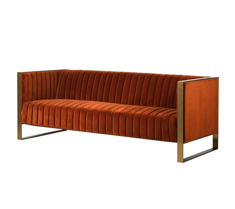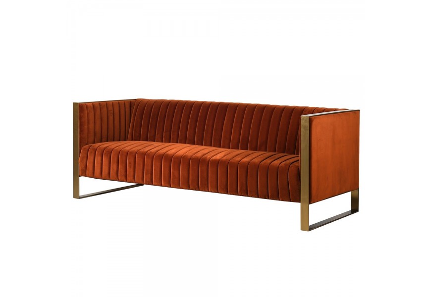 Luxusná hranatá art-deco pohovka Arroyo s oranžovým zamatovým poťahom 210cm