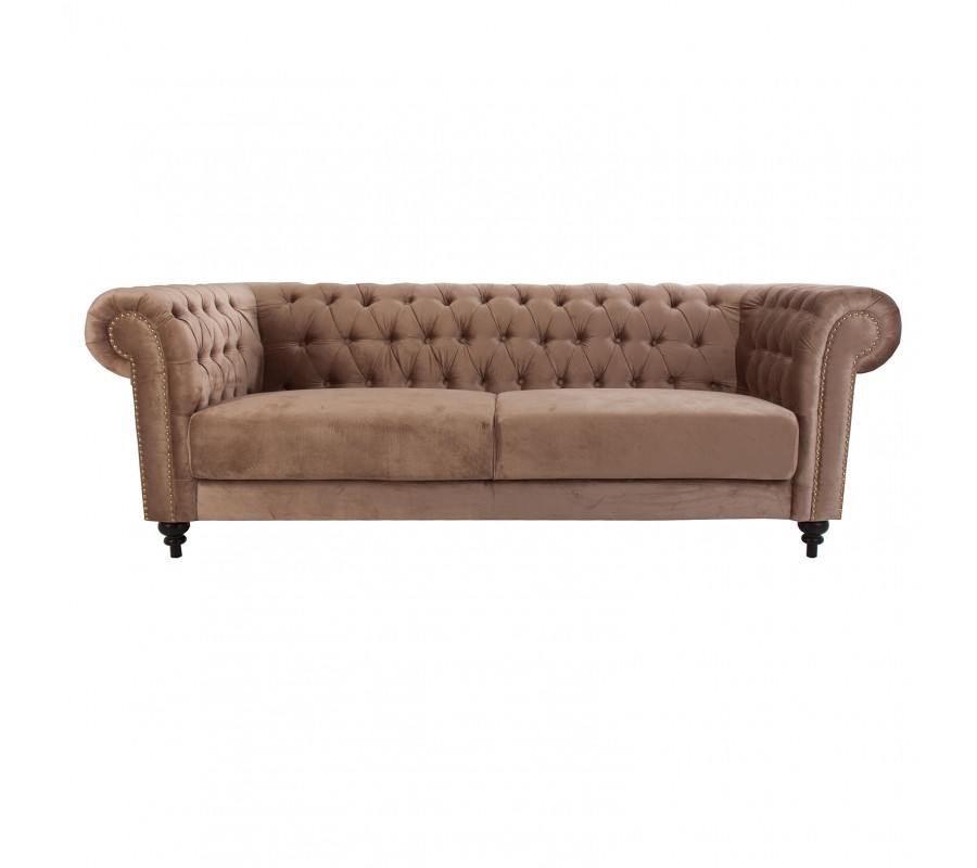 Štýlová chesterfield sedačka KILU pre štýlové a pohodlné posedenie. Hodí sa najmä do klasicky zariadených domácností popr. do moderne zariadených priestorov. Materiál: borovicové drevo, polyester, pena.