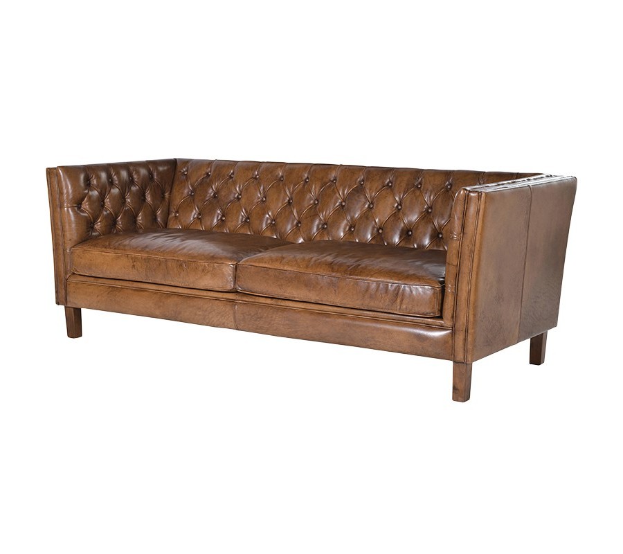 Luxusná sedačka Broom III v Chesterfield štýle je čalúnená v jedinečnej koži byvolov, ktoré sa počas života nachádzajú na poliach a bažinatých vodách. Neobyčajná štruktúra a kresba kože vytvorená spôsobom života vodných byvolov je upravená prírodnými, vodou riediteľnými prípravkami a voskami, takže si zachováva svoj prírodný vzhľad. Sedačka má vďaka povahe tejto jedinečnej kože prirodzenú patinu dokonalú pre čalúnenie v Chesterfield štýle. Sedačka je doplnená hranatými nohami z bukového dreva v odtieňoch korešpondujúcich s hnedou farbou kože. Vonkajšie čalúnenie sedačky má hranatý tvar, je prešívané z vnútornej strany operadla a područiek. Sedačka poskytuje pohodlný sed pre štyroch ľudí. Vďaka čalúneniu aj na zadnej strane je možné ju umiestniť do priestoru. Kožená sedačka v Chesterfield štýle je nestarnúcim prvkom vhodným do akéhokoľvek interiéru s klasickými aj modernými prvkami.