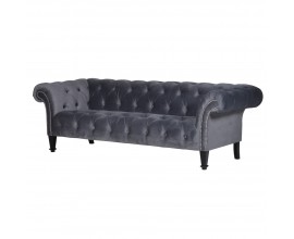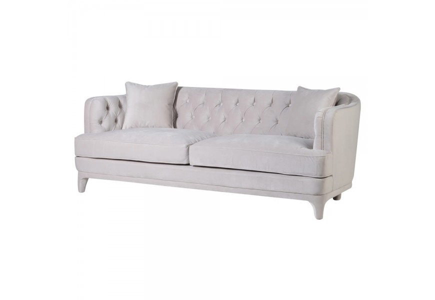 Chesterfield zamatová sedačka Mayers 210cm v krémovej farbe