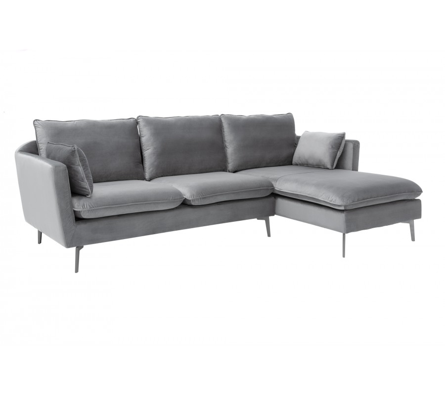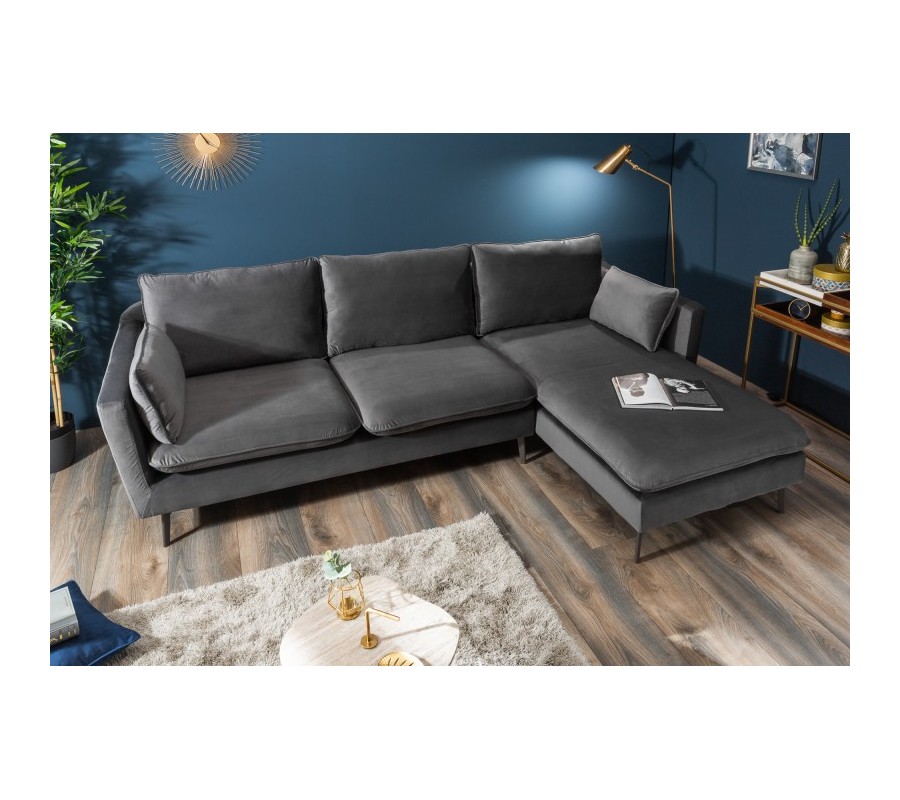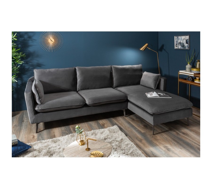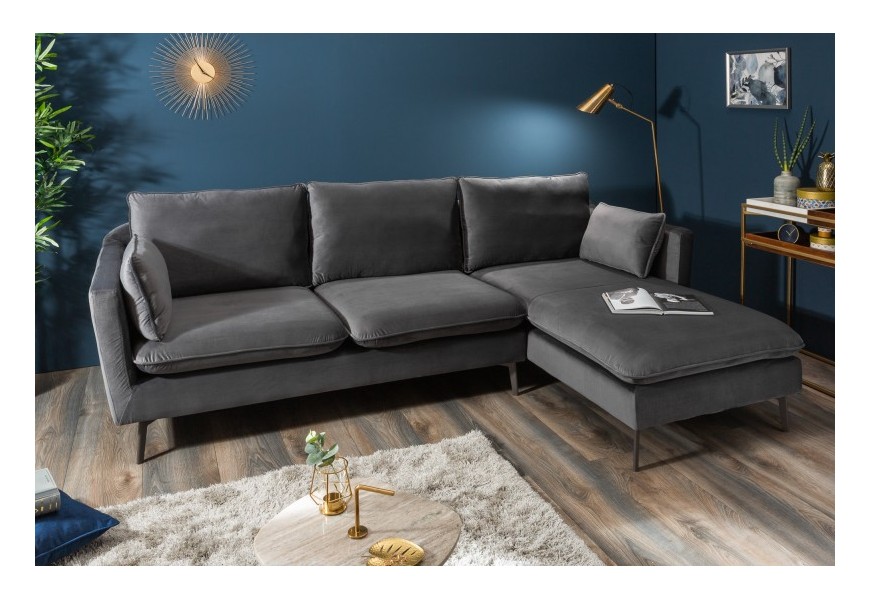 Moderná rohová sedačka Ribble v sivom zamatovom poťahu 260cm