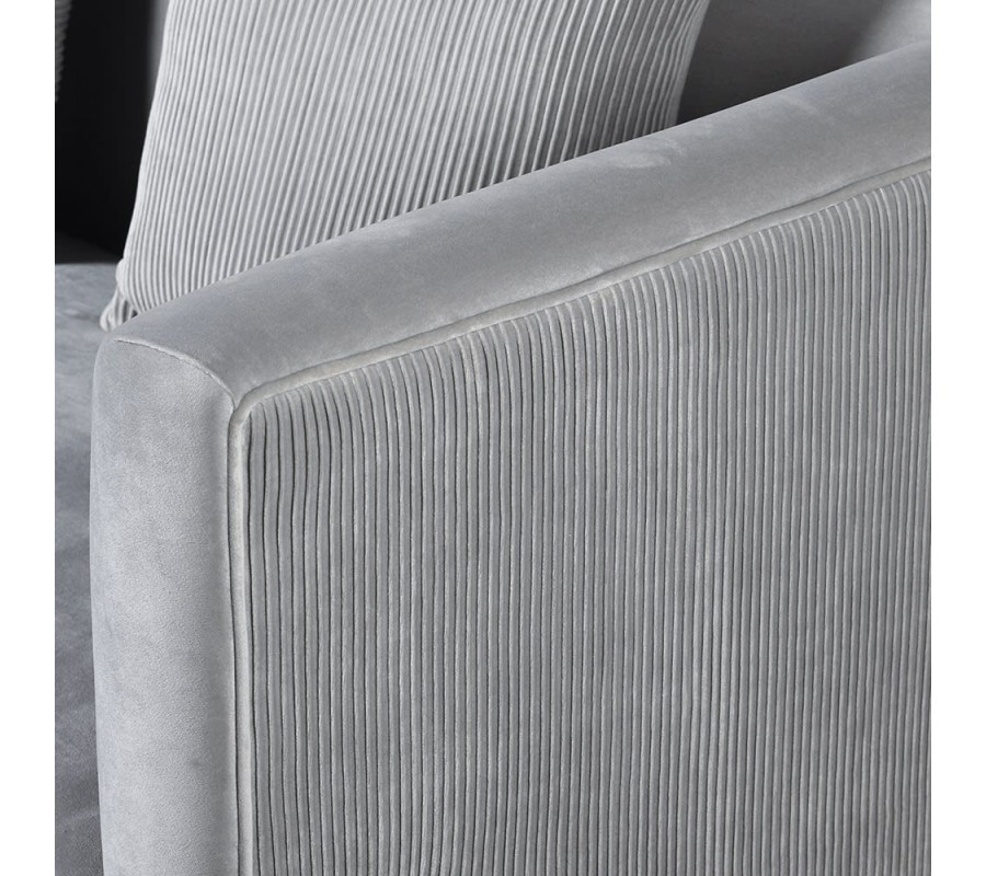 Minimalistický dizajn sedačky Spike je vhodným doplnením množstva štýlových interiérov a vďaka neutrálnemu sivému sfarbeniu sa veľmi ľahko kombinuje. Sivý zamatový poťah je z vonkajšej strany sedačky ozvláštnený hrubou pruhovanou štruktúrou, ktorá sa opakuje na dvojici hranatých vankúšov. Pohodlná čalúnená časť je doplnená praktickými nožičkami z kovu v striebornom odtieni. Modernú sedačku Spike môžete umiestniť do priestorov zariadených masívnym nábytkom z bledého dreva či prvkami kovu. Nemusíte sa báť ani kombinácii s pestrými farbami a vzormi.