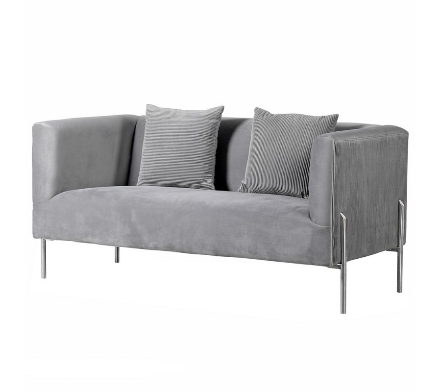 Moderná sivá sedačka Spike so striebornými nohami a zamatovým poťahom 153cm