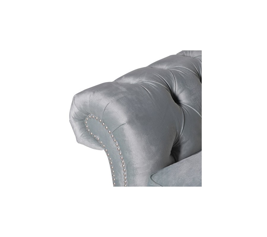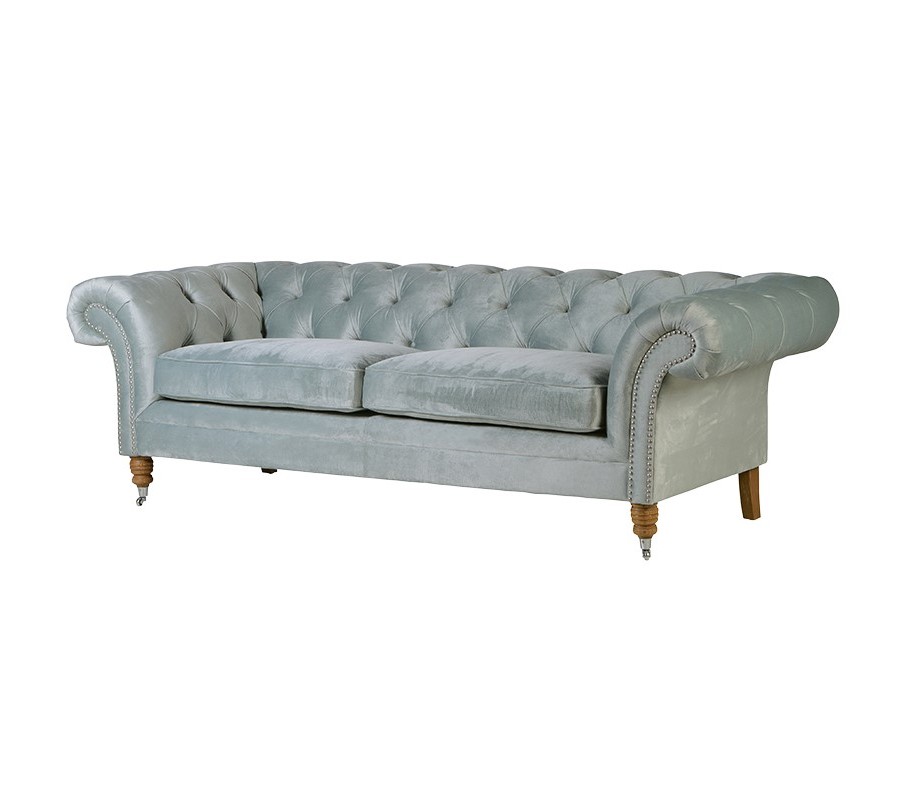 Luxusná a jedinečná pohovka z rady Thieny disponuje nenapodobiteľným a nadčasovým lookom v štýle Chesterfielf. Poťah sedačky Thieny Mint v štýle Chesterfield je v nádhernom pepermintovom odtieni a ohúri vkusným leskom, ktorý mu prepožičiava využitie zamatu. Pohovka Thieny zabezpečuje naozaj príjemné posedenie vďaka jemnému zakriveniu chrbtovej časti a dvomi matracami na sedacej časti. Nohy sedačky Thieny Mint sú vyrobené z masívneho dreva vo farbe, ktorá dokonale ladí s farbou poťahu. Predné nohy sedačky taktiež disponujú kolečkami, pre ľahšiu manipuláciu v priestore, absencia koliečok na zadných nohách naopak zabezpečuje zotrvanie na mieste.