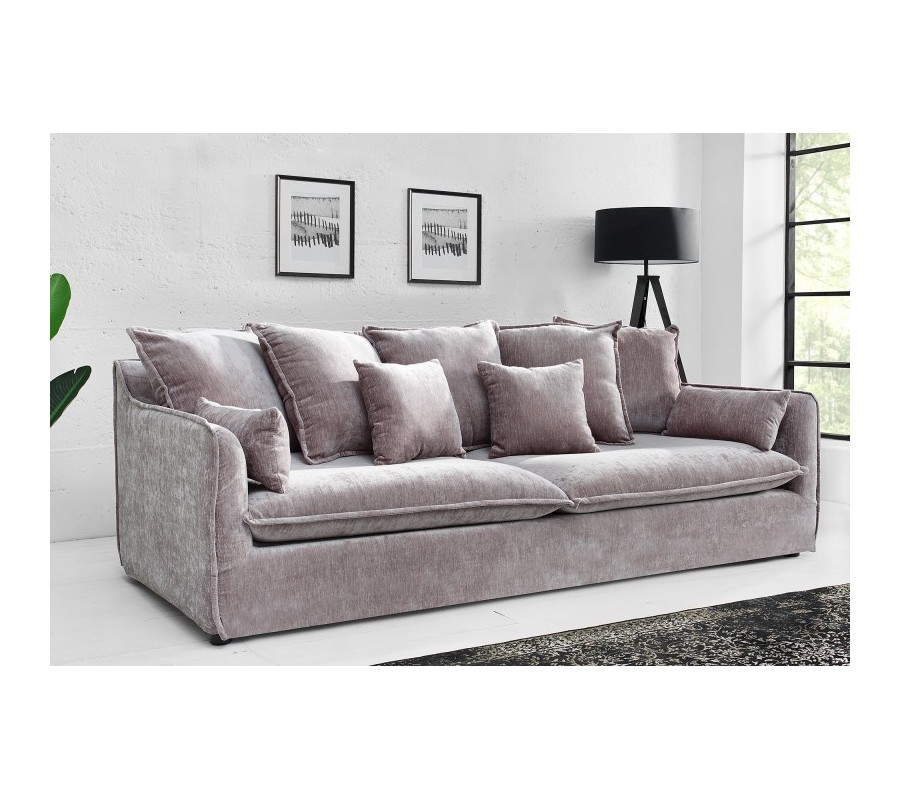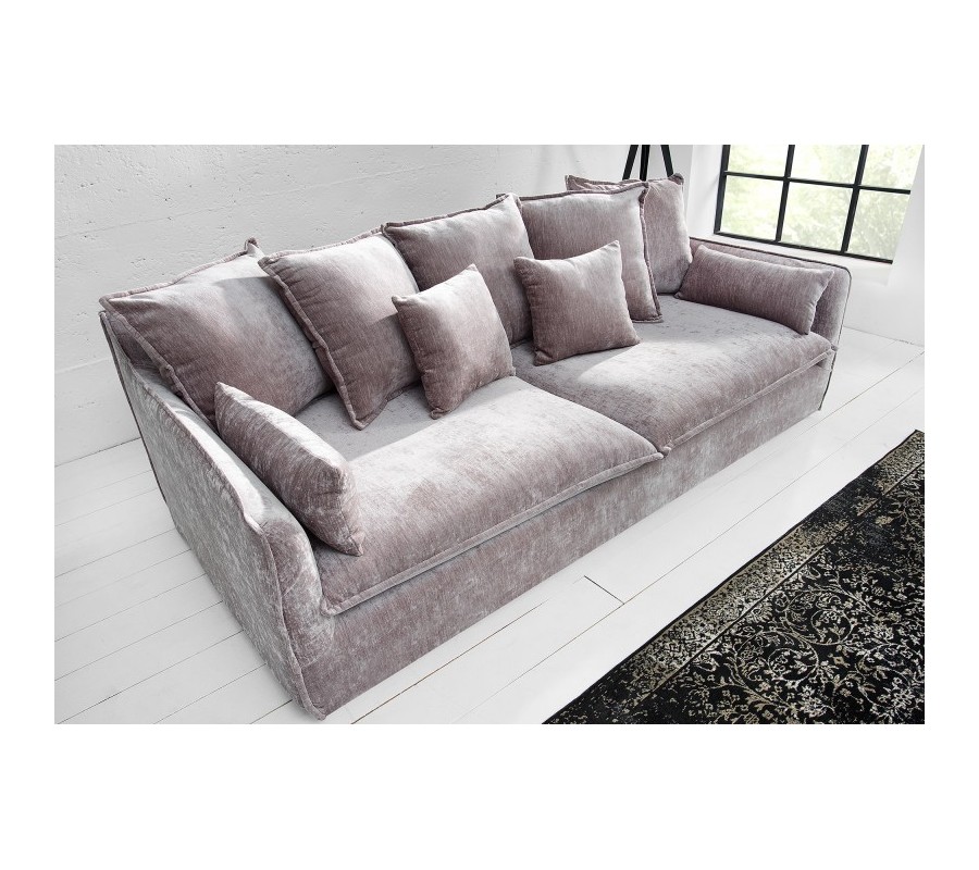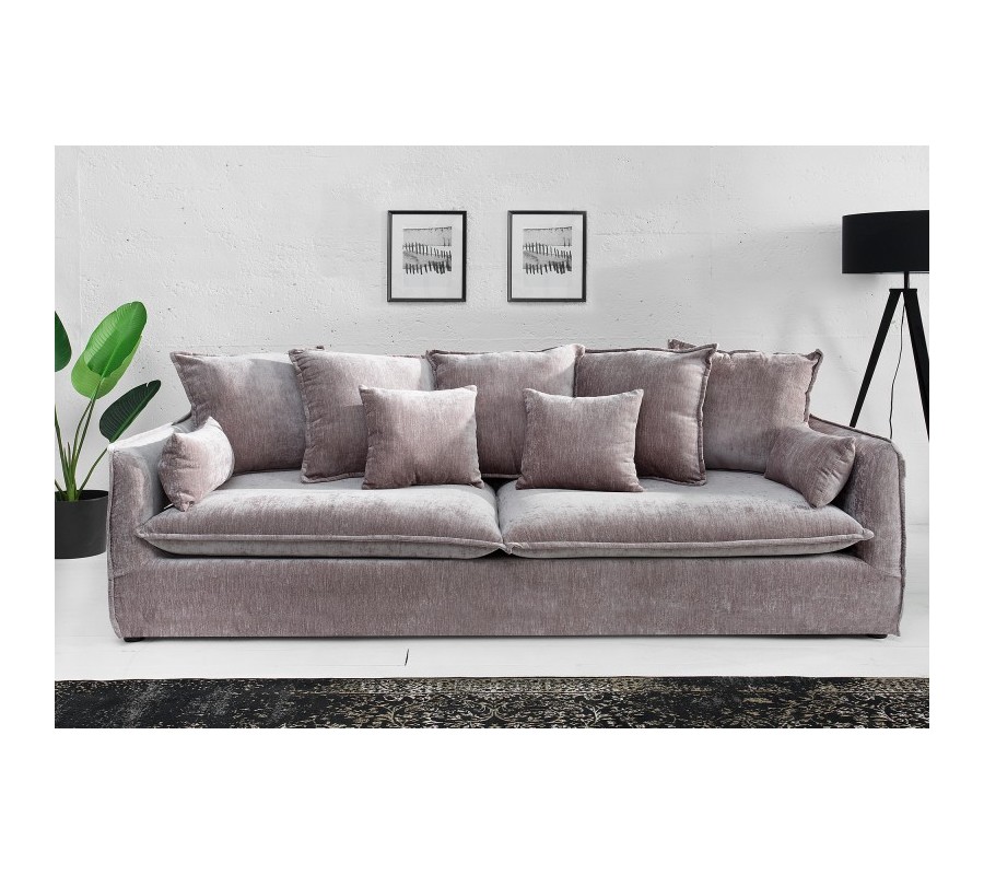 Dizajnová moderná sedačka Heaven so zamatovým poťahom a vankúšmi v hnedom odtieni taupe 200 cm
