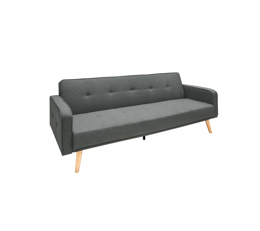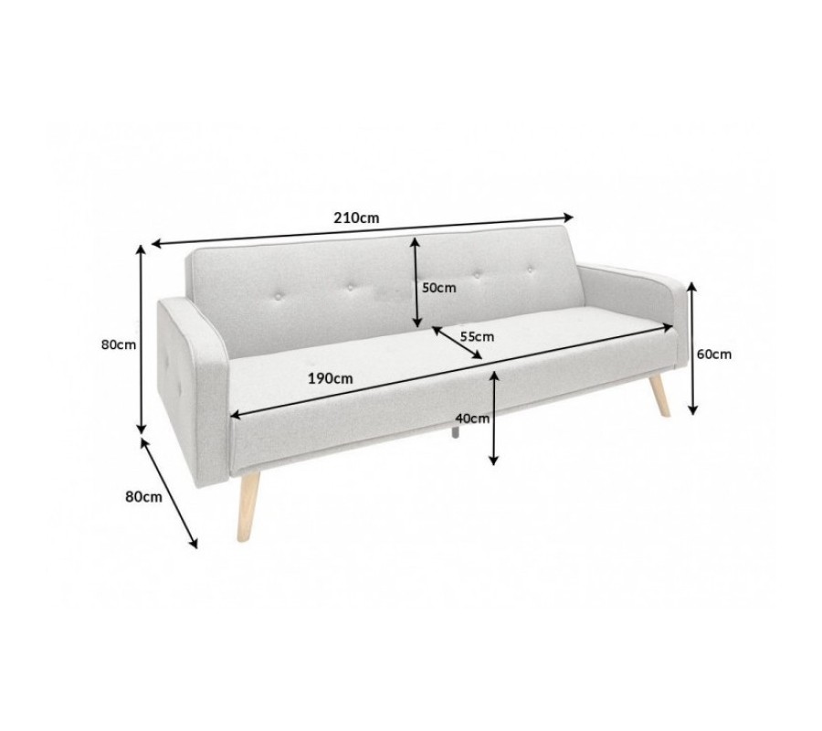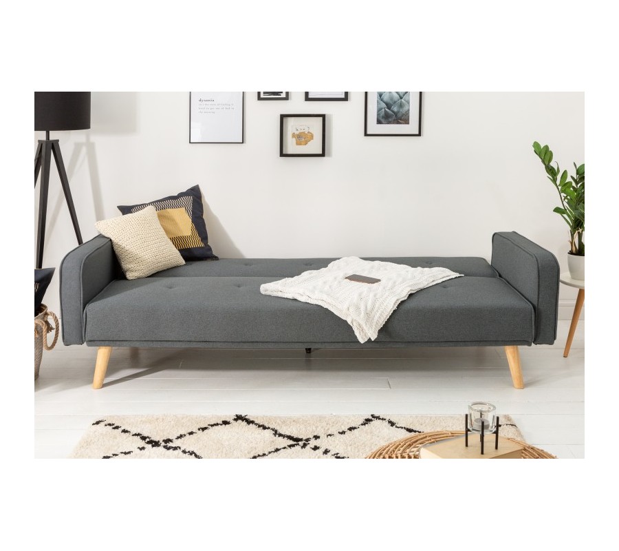 Škandinávska rozkladacia sedačka Yessenia so sivým čalúnením a drevenými nožičkami 210cm