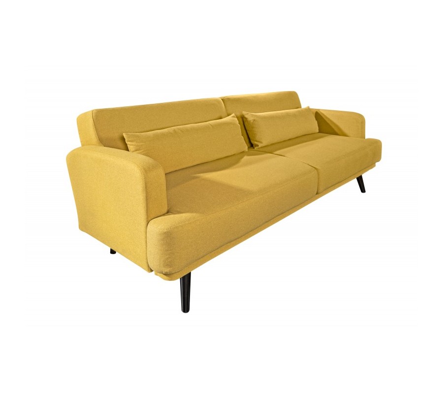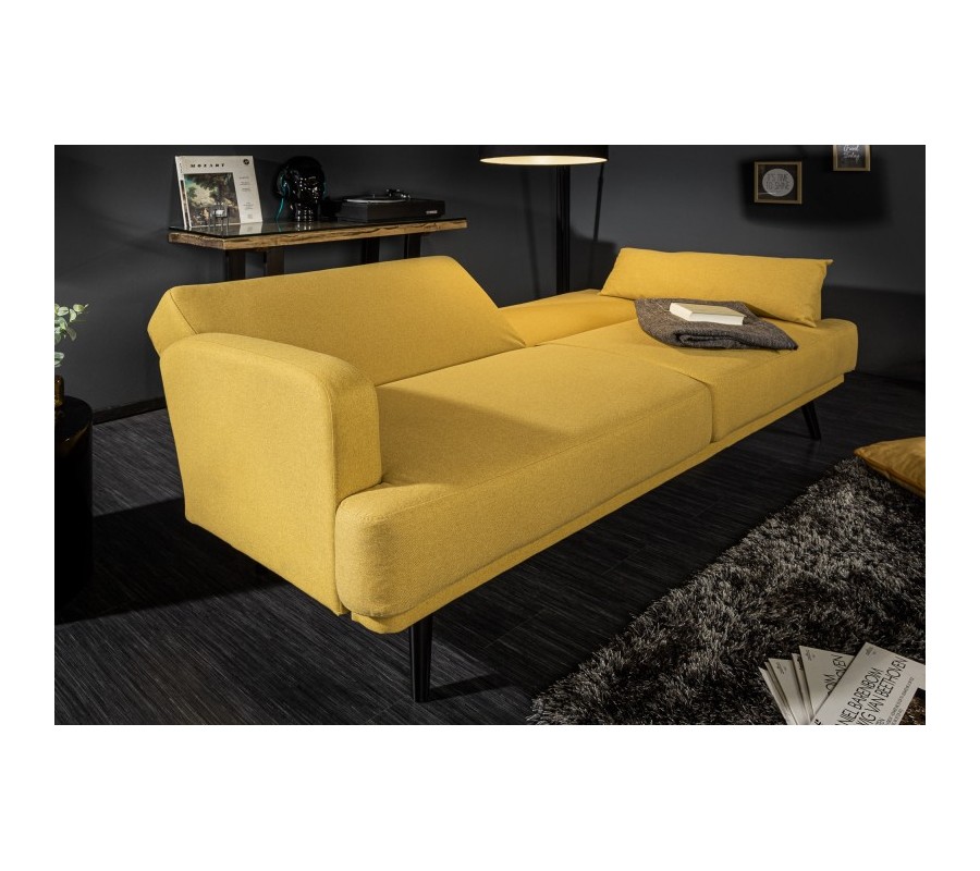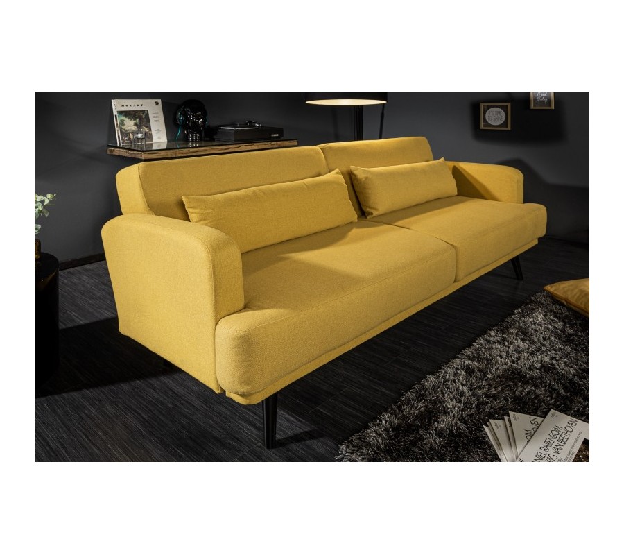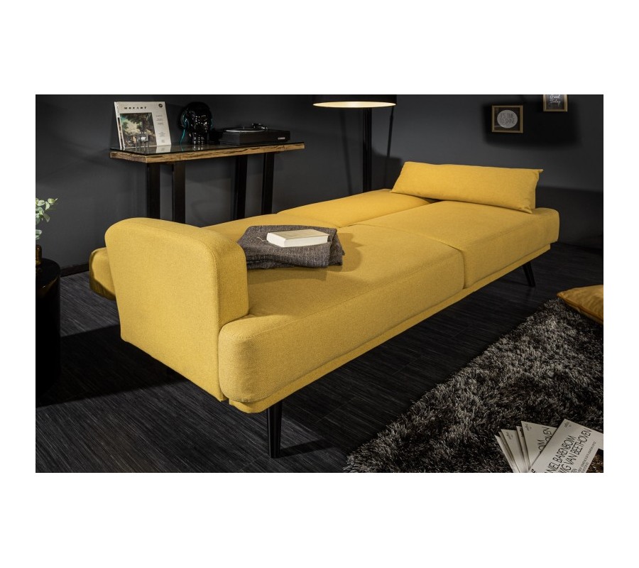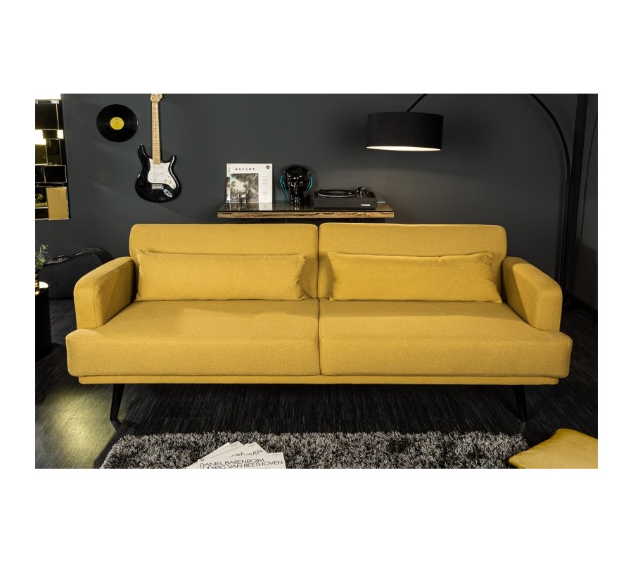 Štýlová sedačka Sheena je zaujímavým kúskom do každého škandinávsky či minimalisticky ladeného interiéru. Ak milujete jednoduchý dizajn a čisté línie, túto sedačku si rozhodne zamilujete! Poťah v žiarivom žltom prevedení vytvára príjemnú kombináciu s čiernymi kovovými nožičkami. Sedačka taktiež disponuje dvomi žltými vankúšmi, ktoré poslúžia k vášmu stopercentnému komfortu. Okrem zaujímavého dizajnu sa môže pýšiť aj praktickosťou, a to vďaka rozťahovacej schopnosti, ktorá zo štýlovej sedačky vytvorí pohodlné miesto na spánok pre vašu návštevu. Sedačka Sheena disponuje poťahom i na zadnej časti a tak ju hravo môžete umiestniť i do priestoru. Skvelo vynikne najmä v tmavšie ladených, minimalistických interiéroch, kde môže naplno vyniknúť a zažiariť.