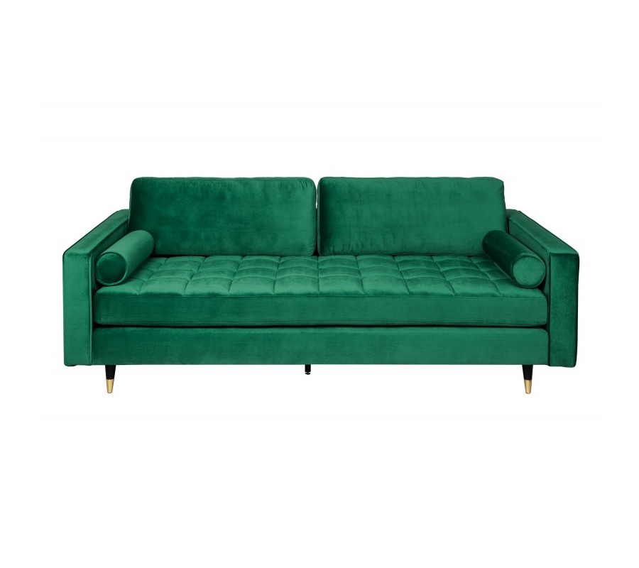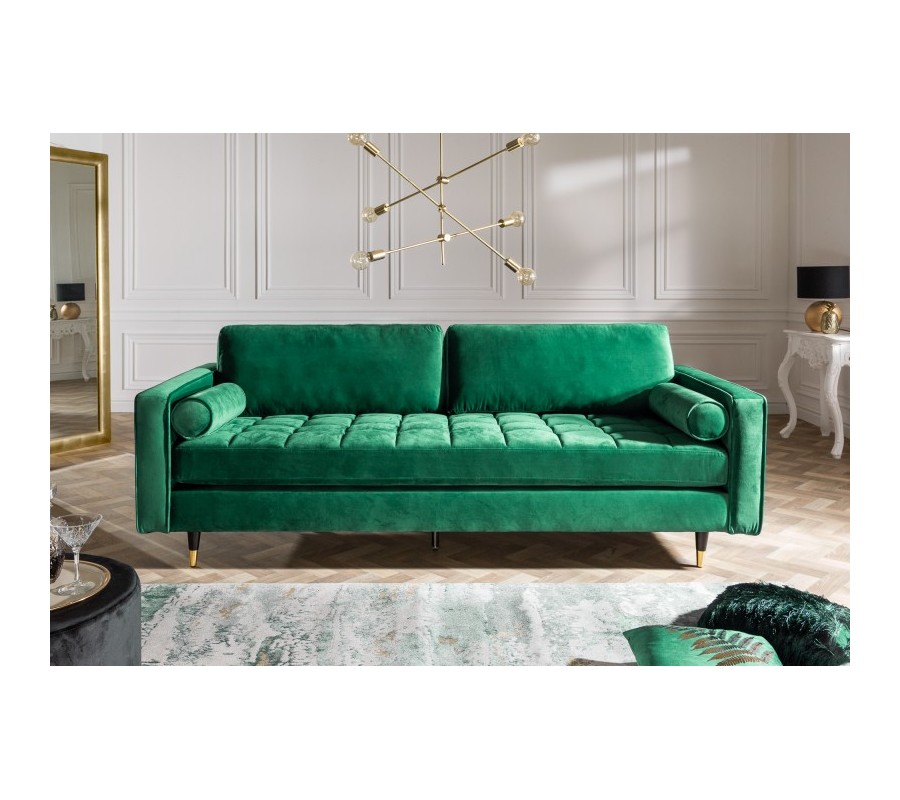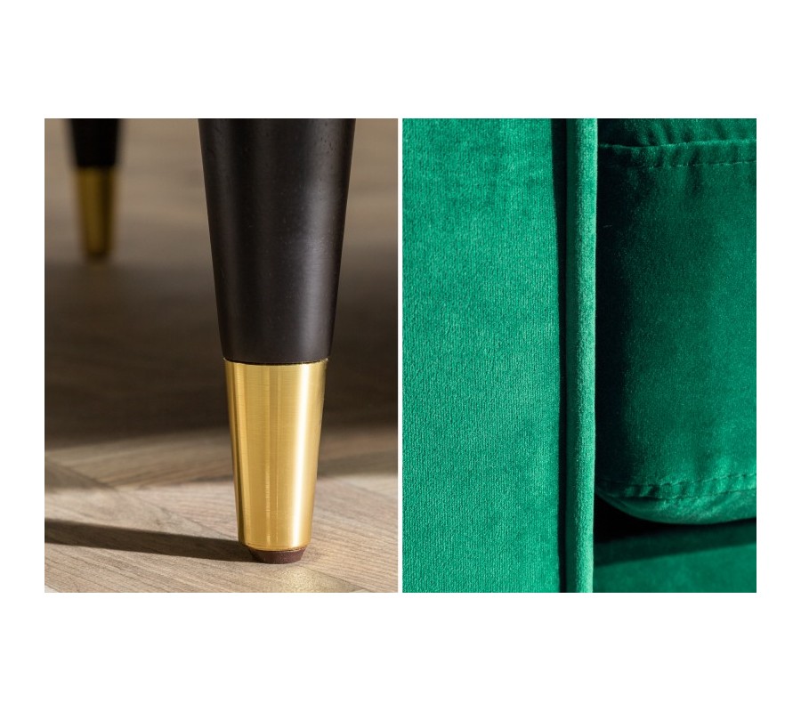 Luxusná moderná sedačka Nefertiti je v smaragdovej farbe s čalúnením pripomínajúcim zamat. Pohodlne sa na nej sedí a zmestia sa tam traja ľudia. Je príjemná a jemná na dotyk. Má dve operadlá, ktoré spríjemnia dlhé sedenie. Súčasťou sú štyri nohy, ktoré majú spodnú časť s ochranou proti poškodeniu podlahy. Zaujímavé farebné prevedenie elegantne oživí svetlý priestor, no zapadne aj v tmavších tónoch. Avšak vynikne a upúta pozornosť v akomkoľvek interiéri. Hodí sa najmä do moderných priestorov. Preto siahnite po tejto sedačke a doplňte si svoj interiér o nový kúsok, ktorý môžete hravo umiestniť i ďalej d steny, nakoľko disponuje čalúnením i na zadnej strane.