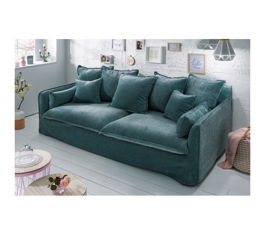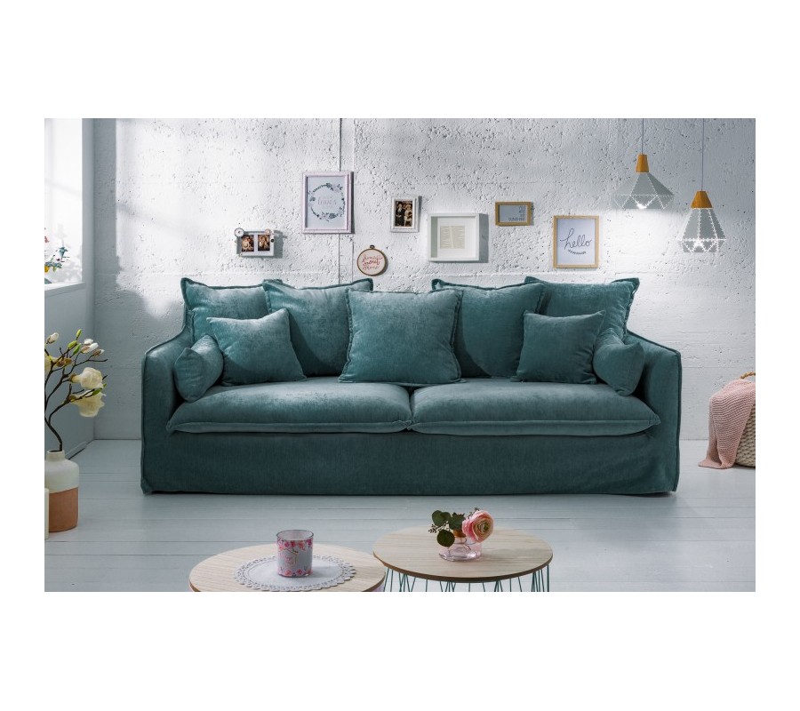 Štýlová sedačka Heaven svojim voľným čalúnením už na prvý pohľad evokuje atmosféru dokonalej domácej pohody. Lesklý zamatový poťah v petrolejovom odtieni sa okrem Čalúnenie sedačky objavuje aj na doplnkových dekoratívnych vankúšoch, ktoré dotvárajú celkový dizajn a pocit pohodlia počas pobytu na sedačke. Pohodlná sedačka Heaven je dokonalým miestom na príležitostný odpočinok pre vás či vašich hostí a jej rozmer je dostatočný pre usadenie štyroch osôb. Pohodlnosť pohovky zaručuje jej pružinové jadro. Výrazný petrolejový poťah sa nemusíte báť kombinovať s akýmikoľvek vzormi či farbami, skvele sa hodí k tmavým odtieňom masívneho nábytku a luxusným lesklým prvkom z kovu.